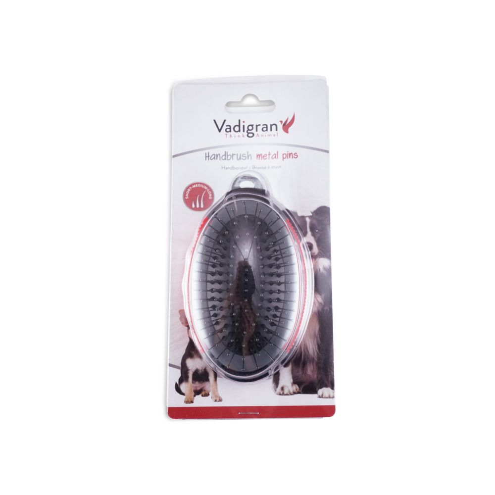 Η Vadigran Χτένα με Μεταλλικές Ακίδες Medium είναι σχεδιασμένη για κατοικίδια με μεσαίου μεγέθους ή πυκνό τρίχωμα. Οι ακίδες εισχωρούν στο τρίχωμα και απομακρύνουν νεκρή τρίχα και σκόνη, ενώ η εργονομική αντιολισθητική λαβή εξασφαλίζει άνετο και ασφαλές κράτημα.