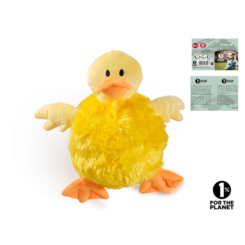 Το Vadigran Dog Toy Plush Belly Duck Λούτρινο Παιχνίδι 28cm είναι κατασκευασμένο από απαλό υλικό τύπου plush και διαθέτει ενσωματωμένο σφύριγμα (squeaker) που ενισχύει το ενδιαφέρον του σκύλου. Η διάσταση των 28cm το καθιστά κατάλληλο για σκύλους μικρού έως μεσαίου μεγέθους που απολαμβάνουν το παιχνίδι, το κουβάλημα ή την αγκαλιά με ένα λούτρινο παιχνίδι.