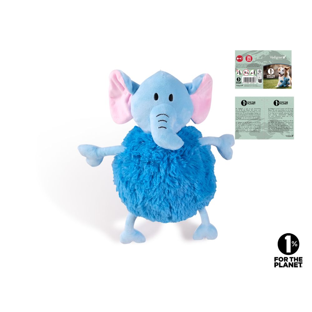 Το Vadigran Dog Toy Plush Belly Elephant Λούτρινο Παιχνίδι 28cm είναι κατασκευασμένο από απαλό υλικό τύπου plush και διαθέτει ενσωματωμένο σφύριγμα (squeaker) για επιπλέον διασκέδαση. Η διάσταση των 28cm καθιστά το παιχνίδι κατάλληλο για μικρού έως μεσαίου μεγέθους σκύλους που απολαμβάνουν το κουβάλημα ή την αγκαλιά με ένα λούτρινο παιχνίδι.