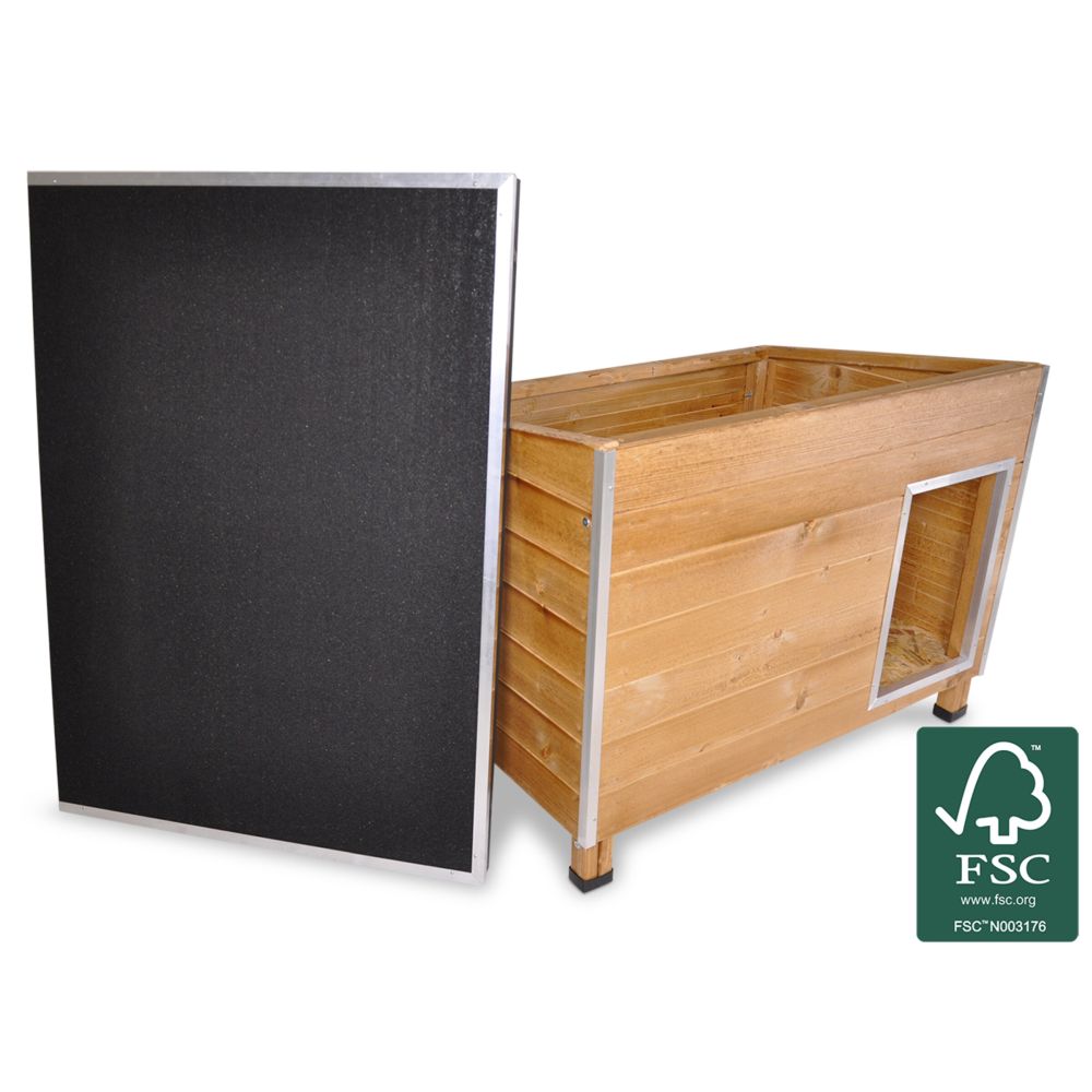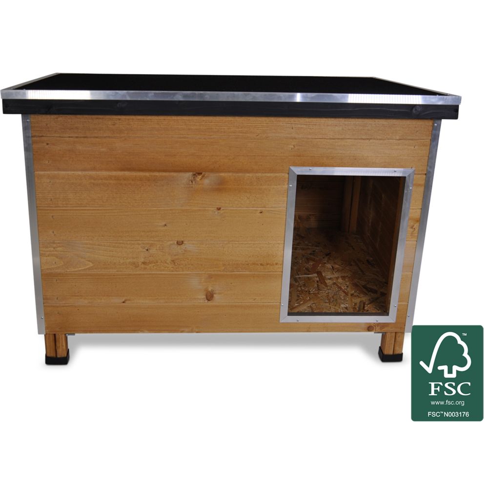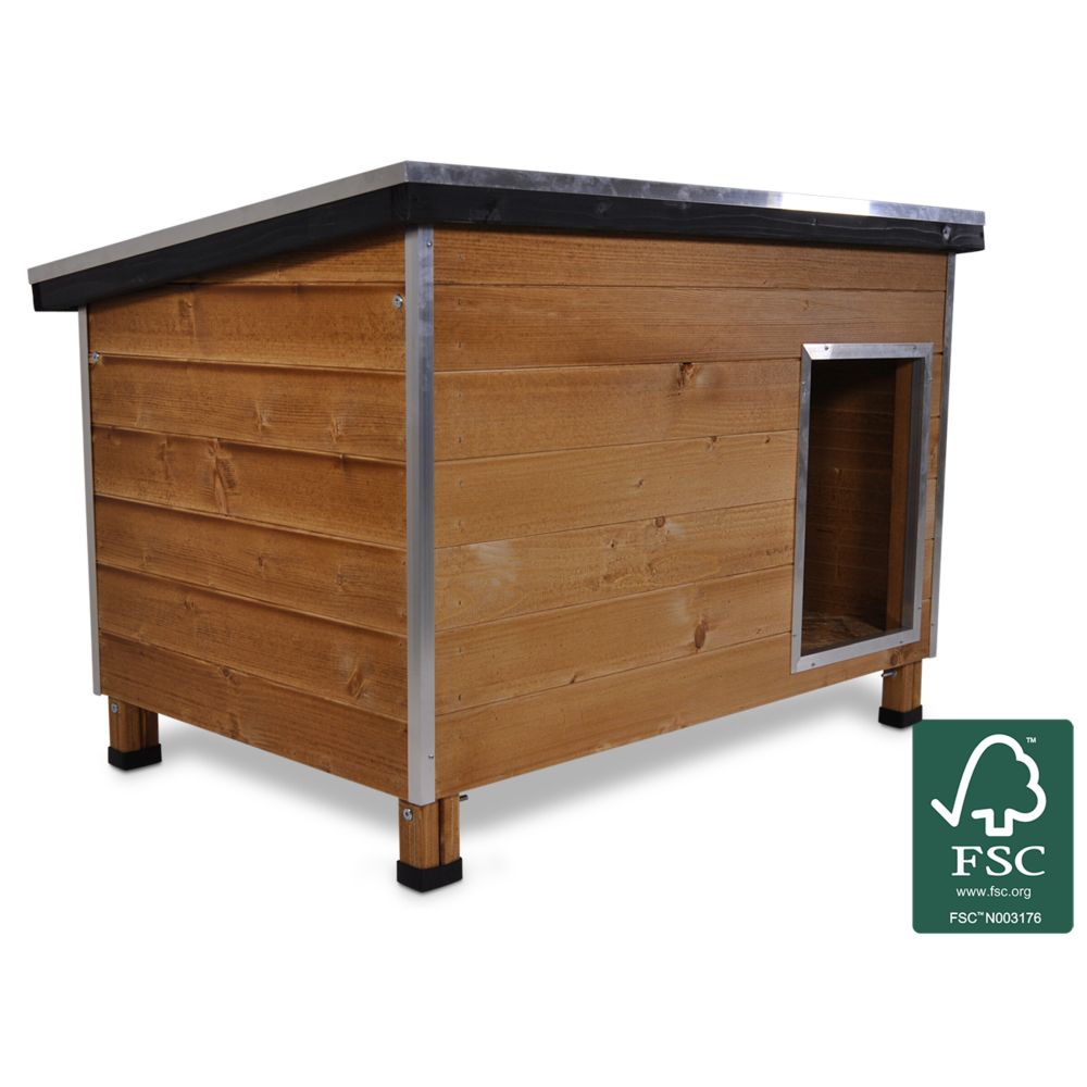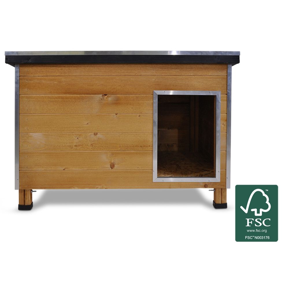 Ξύλινο σπίτι σκύλου με ανθεκτική κατασκευή για χρήση σε εξωτερικούς χώρους.