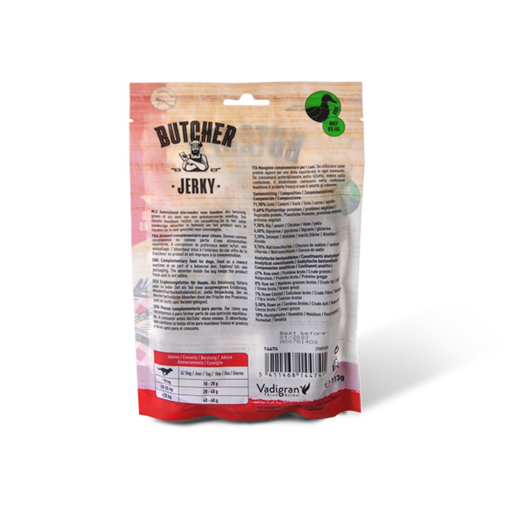 Το Vadigran Duck Jerky είναι μια πλούσια σε γεύση λιχουδιά για σκύλους με αποξηραμένο κρέας πάπιας, ιδανική για καθημερινή επιβράβευση, εκπαίδευση ή απλή απόλαυση. Η ξερή υφή του jerky προσφέρει έντονη, φυσική γεύση που αρέσει στους περισσότερους σκύλους, ενώ είναι εύκολο στο μάσημα και κατάλληλο για σκύλους κάθε μεγέθους.