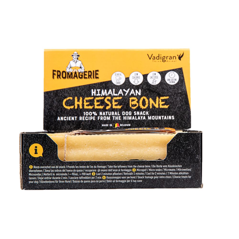 Το Vadigran Fromagerie Cheese Bone είναι φυσική λιχουδιά μάσησης για σκύλους από 99,9% γάλα, χωρίς συντηρητικά και χρωστικές, με παραδοσιακή συνταγή ξήρανσης που ενισχύει την υγιή στοματική φροντίδα. Προσφέρει παρατεταμένη απασχόληση και υποστηρίζει τη μηχανική μείωση πλάκας και ταρτάρου μέσω της σκληρής υφής του.