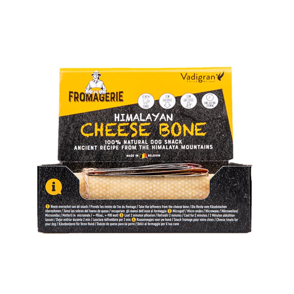 Το Vadigran Fromagerie Cheese Bone είναι φυσική λιχουδιά μάσησης για σκύλους από γάλα υψηλής περιεκτικότητας, ιδανική για παρατεταμένη απασχόληση και υγιή στοματική φροντίδα. Η παραδοσιακή διαδικασία ξήρανσης και η απλή σύνθεση χωρίς συντηρητικά ή χρωστικές το καθιστούν εύπεπτη επιλογή για καθημερινή χρήση.