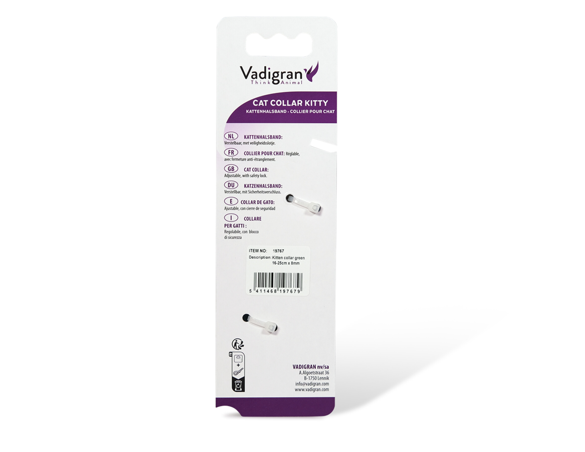 Το Vadigran Kitten Collar Green είναι σχεδιασμένο ειδικά για μικρά γατάκια, προσφέροντας άνεση και ασφάλεια: