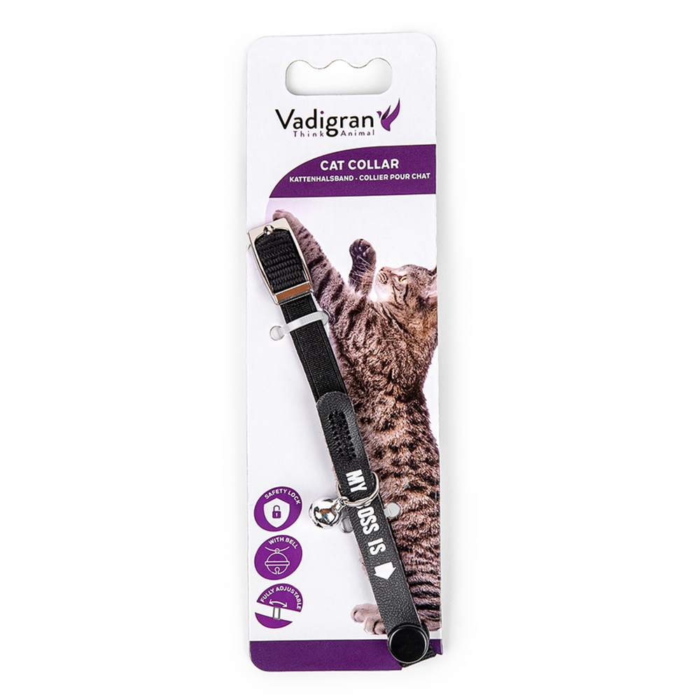Το Vadigran Cat Collar My Boss Black συνδυάζει στυλ, άνεση και ασφάλεια για καθημερινή χρήση: