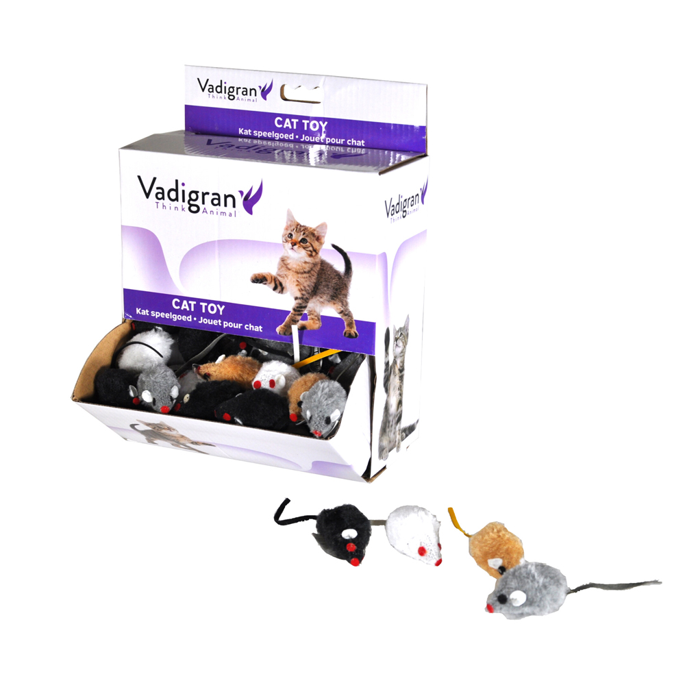 Το Vadigran Cat Toy Mouse Short Hair Assorted αποτελεί ένα σετ παιχνιδιού με ποικιλία χρωμάτων και υφών: