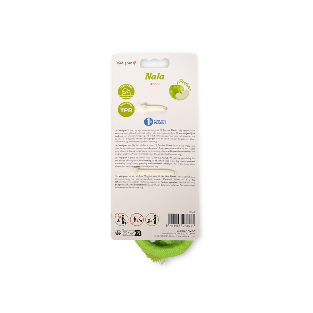 Μπάλα από καουτσούκ TPR με ενσωματωμένο σχοινί σε πράσινο χρώμα. Διάσταση 45cm και βάρος περίπου 120gr. Ιδανική για ρίψεις, ανάκτηση και ενεργό παιχνίδι.