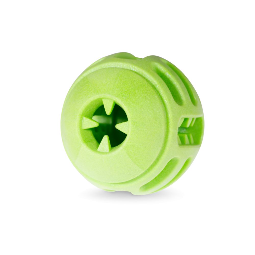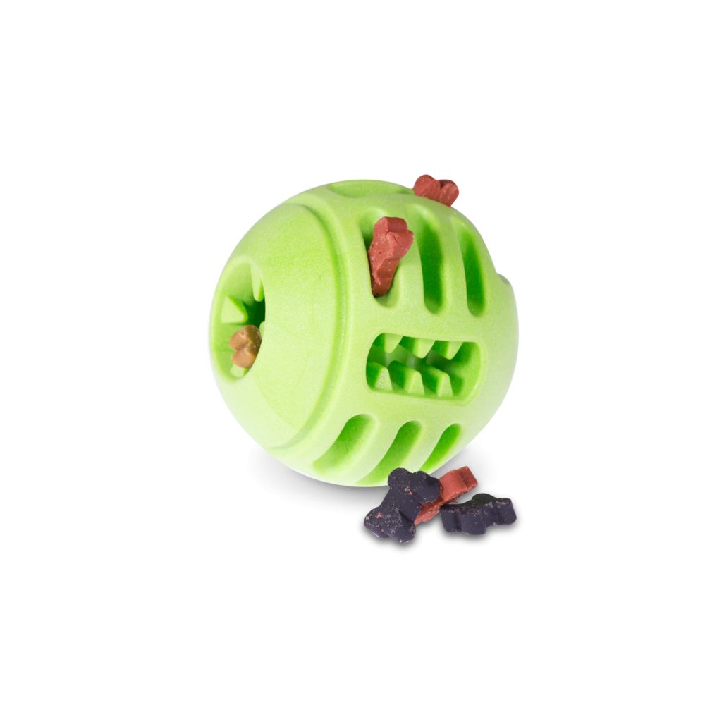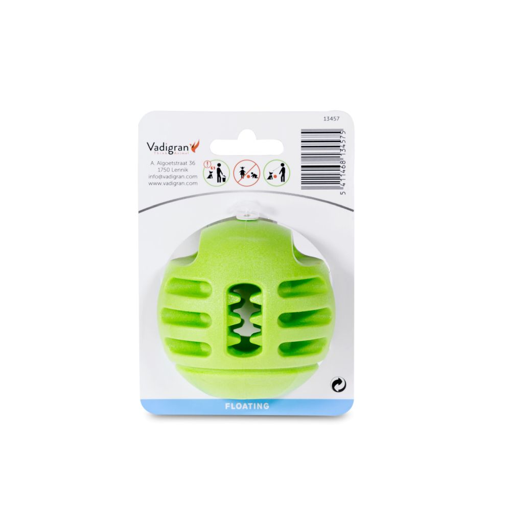 Το Vadigran Παιχνίδι Καουτσούκ TPR Μπάλα Πράσινο Μήλο 8cm 120gr είναι κατασκευασμένο από ανθεκτικό θερμοπλαστικό καουτσούκ (TPR) με άρωμα πράσινου μήλου που διεγείρει την περιέργεια του σκύλου. Η μικρή διάσταση και η ανθεκτική υφή το καθιστούν ιδανικό για καθημερινό παιχνίδι, ρίψεις και μάσημα.