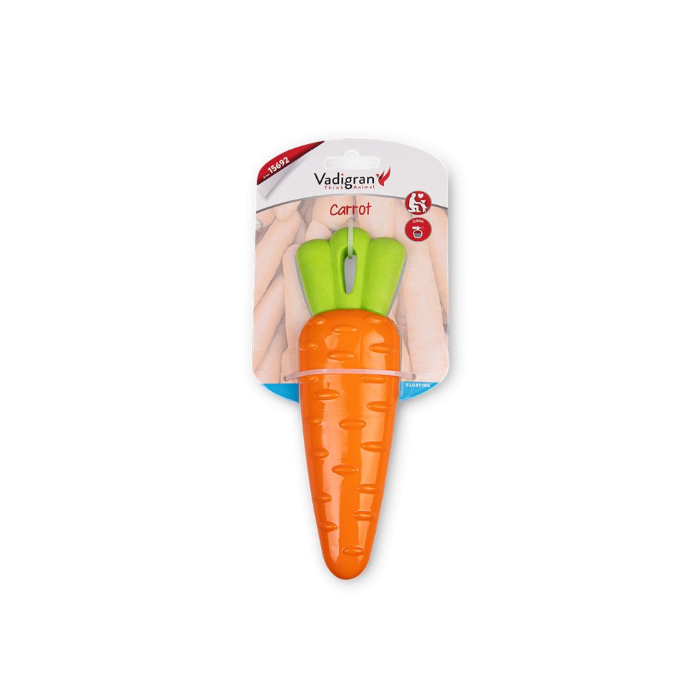 Το Vadigran Παιχνίδι Καουτσούκ TPR Καρότο Άρωμα Ποπ-Κορν 20cm 120gr είναι κατασκευασμένο από υψηλής ποιότητας θερμοπλαστικό καουτσούκ (TPR) και διαθέτει άρωμα ποπ-κορν που προσελκύει το ενδιαφέρον του σκύλου. Το σχήμα καρότου το καθιστά εύχρηστο για το δάγκωμα και το μάσημα, συμβάλλοντας ταυτόχρονα στη φροντίδα των δοντιών και των ούλων κατά τη διάρκεια του παιχνιδιού.