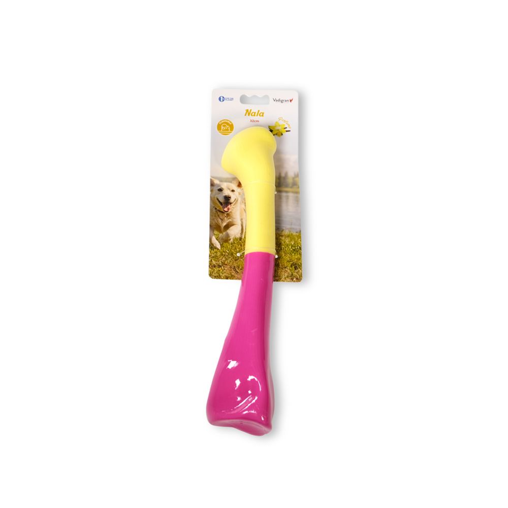 Το Vadigran Παιχνίδι Καουτσούκ TPR Κόκκαλο Ροζ/Κίτρινο 32 cm 240 gr είναι κατασκευασμένο από θερμοπλαστικό καουτσούκ (TPR) με ανθεκτική υφή, σχεδιασμένο για παιχνίδι με ρίψεις, τράβηγμα και ανάκτηση. Η φωτεινή συνδυαστική απόχρωση ροζ‑κίτρινο το καθιστά εύκολα ορατό, ενώ η διάσταση των 32 cm το καθιστά κατάλληλο για μεσαίου έως μεγάλου μεγέθους σκύλους που απολαμβάνουν ενεργοβόρο παιχνίδι.