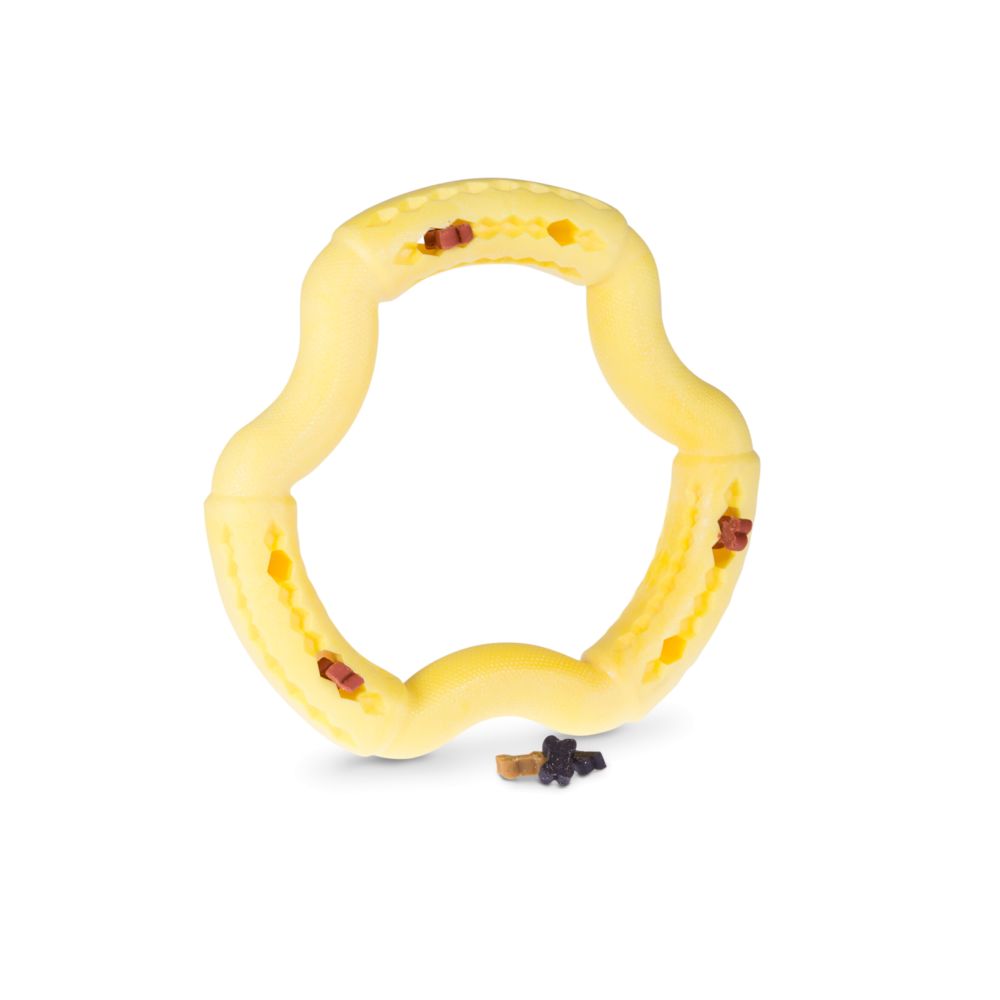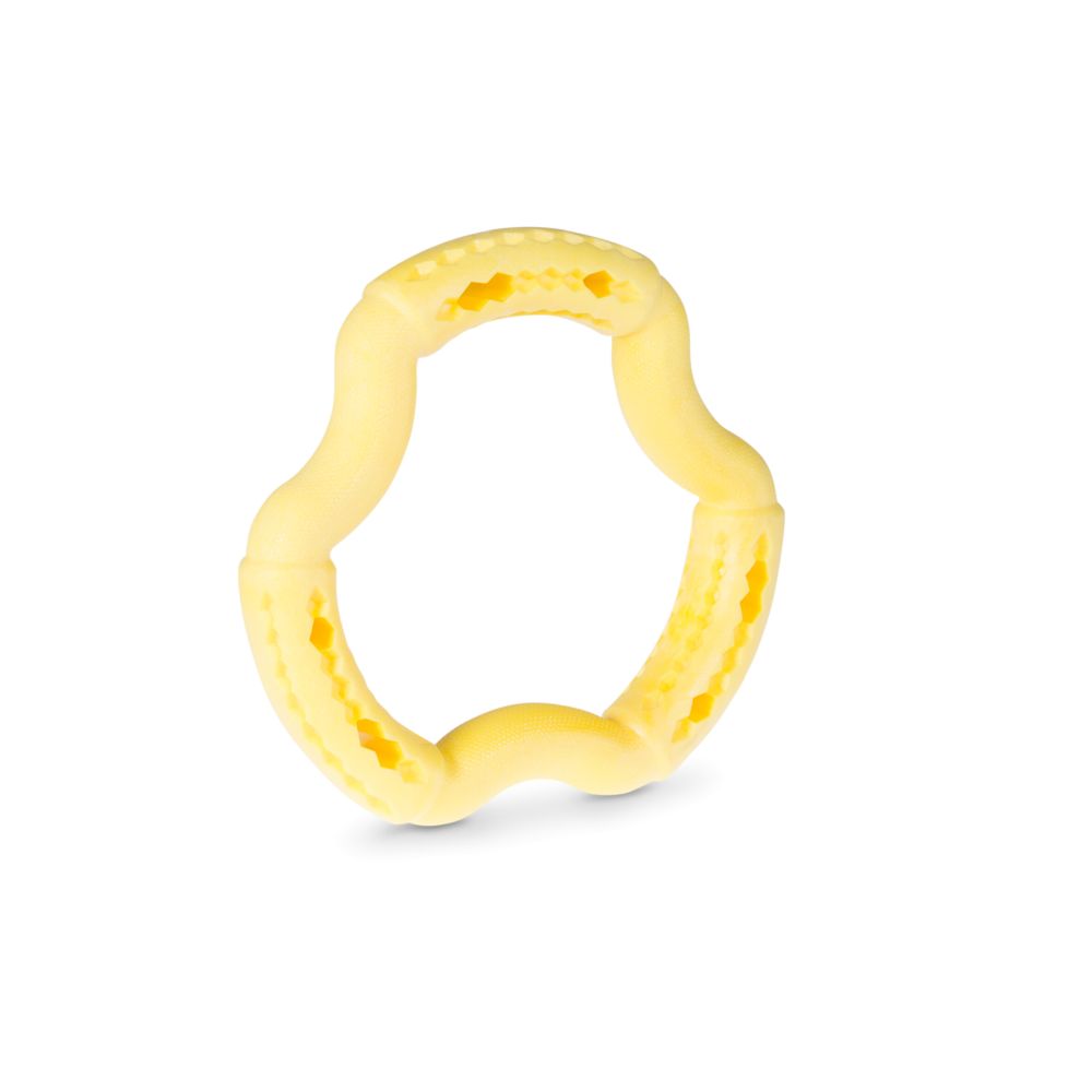 Το Vadigran Παιχνίδι Καουτσούκ TPR Ring Κίτρινο-Βανίλια 21cm 150gr είναι κατασκευασμένο από θερμοπλαστικό καουτσούκ (TPR), με άρωμα βανίλιας που διεγείρει το ενδιαφέρον του σκύλου. Το σχήμα δαχτυλιδιού προσφέρει εύκολο κράτημα και ιδανική απόδοση για τράβηγμα, ρίψεις και παιχνίδι στην ύπαιθρο.
