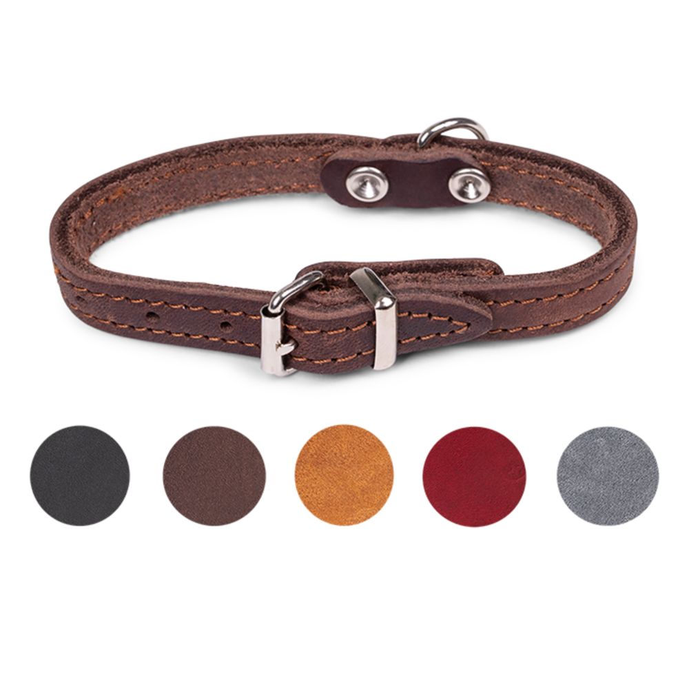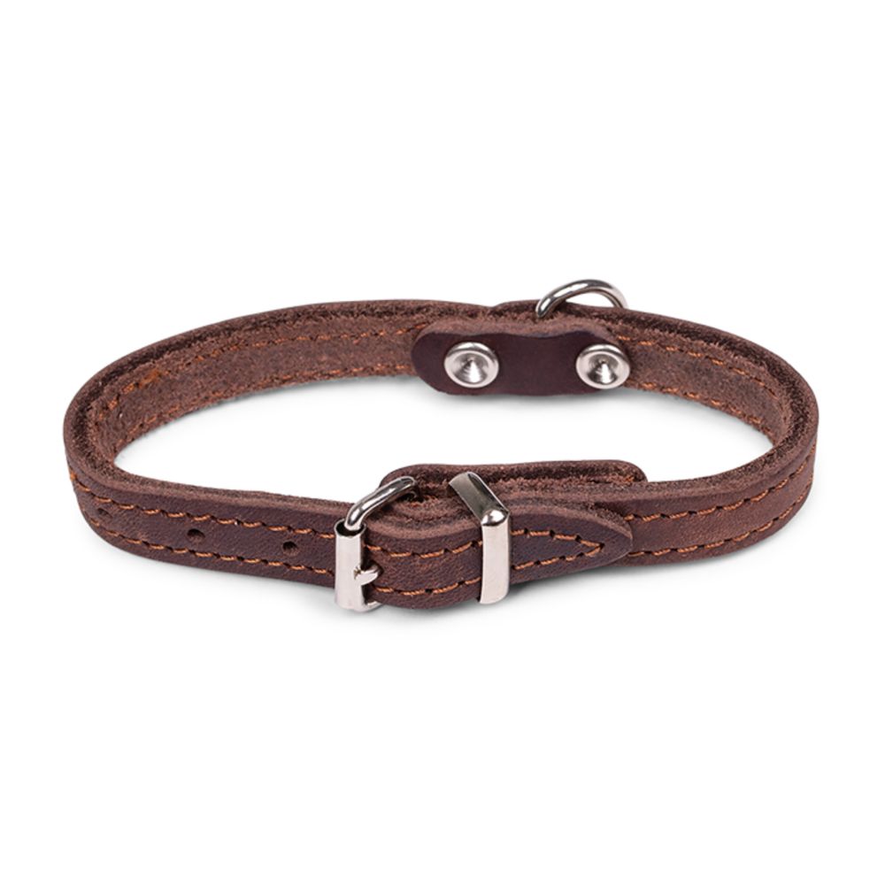 Δερμάτινο περιλαίμιο σε καφέ χρώμα, μήκους 27 cm και πλάτους 12 mm — κατάλληλο για πολύ μικρά σκυλιά.