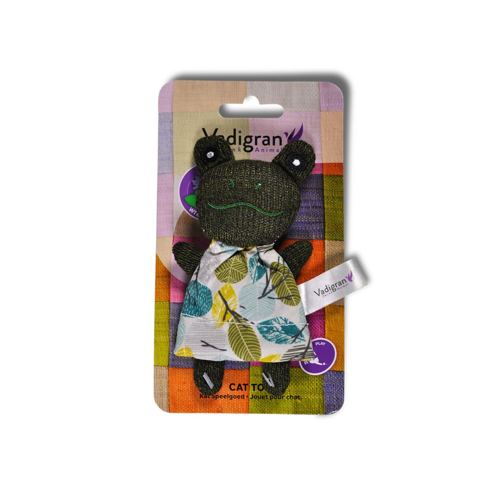 Το Vadigran Poppy Frog με Catnip Παιχνίδι Γάτας συνδυάζει χαριτωμένη φιγούρα βάτραχου με ενσωματωμένο catnip, ενισχύοντας το ενδιαφέρον της γάτας για παιχνίδι. Η χρήση του είναι κατάλληλη για εσωτερικούς χώρους, προσφέροντας ψυχαγωγία και άσκηση. Το παιχνίδι είναι κατασκευασμένο από μαλακό ύφασμα με ασφαλή γέμιση, προορισμένο να κρατήσει τη γάτα δραστήρια και ευχαριστημένη.