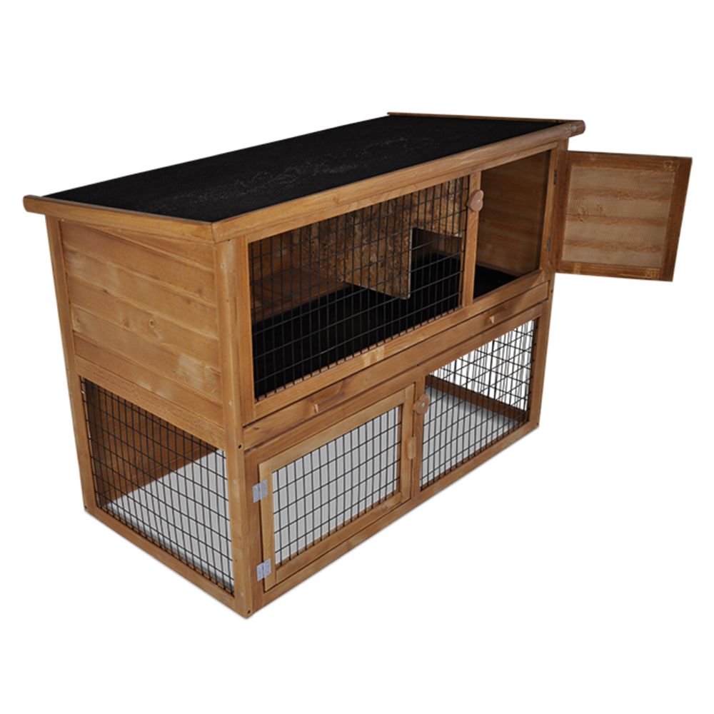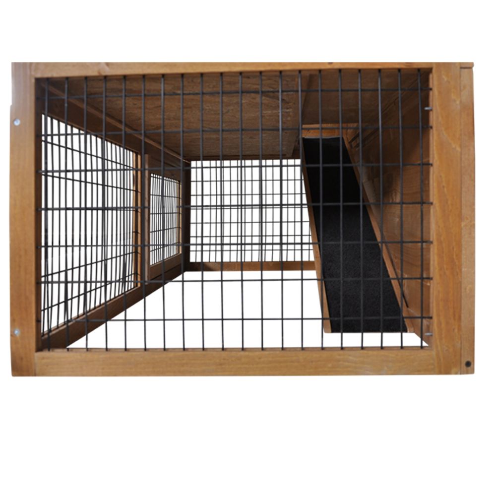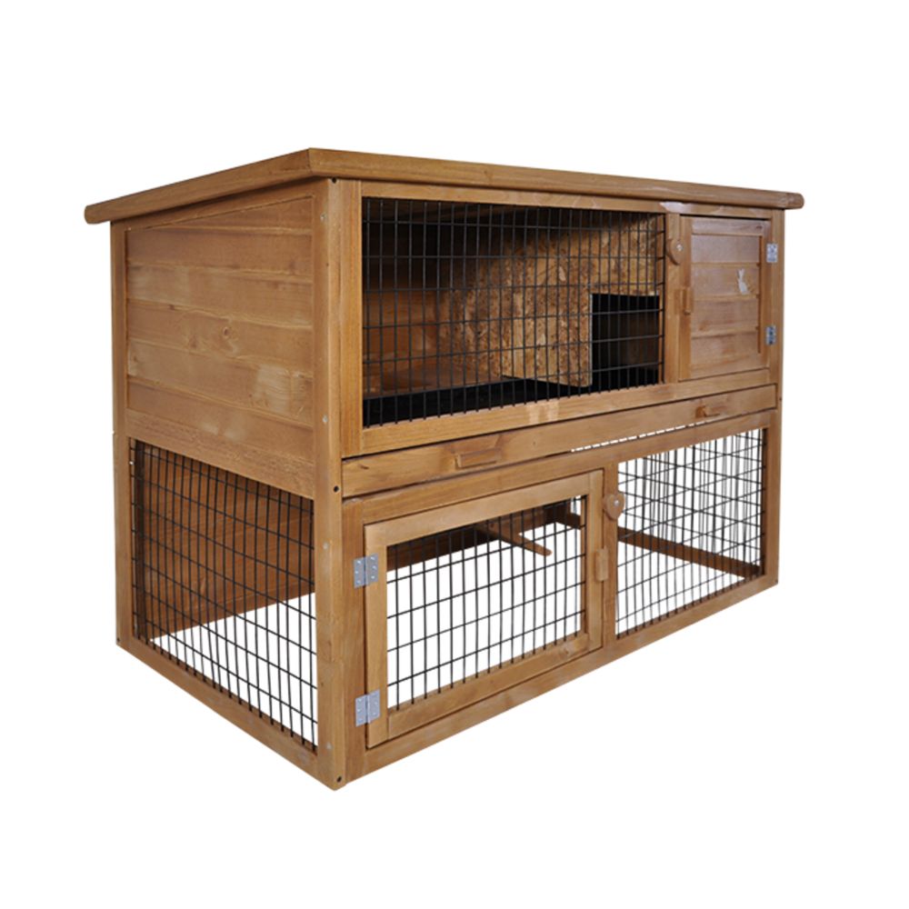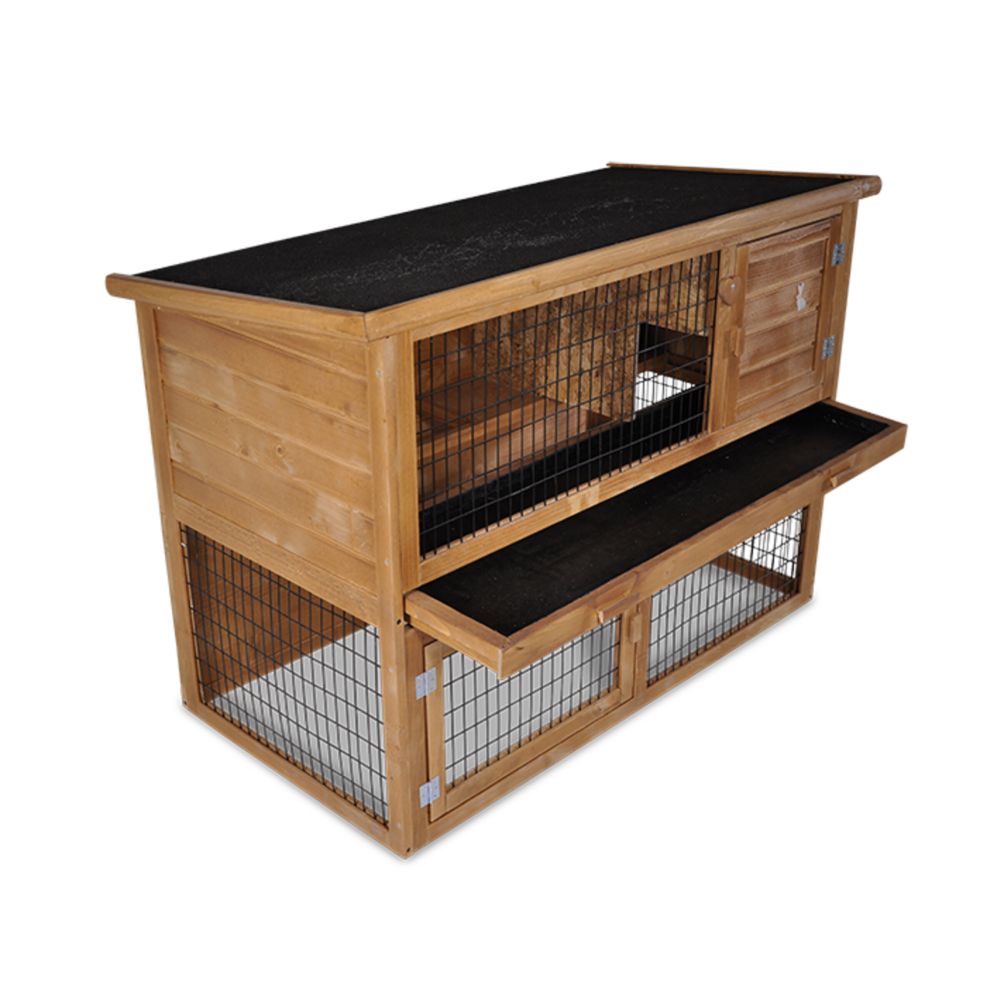 - Διαστάσεις: 121 cm μήκος × 65 cm πλάτος × 88 cm ύψος — κατάλληλο για 1–2 κουνέλια με άνεση.