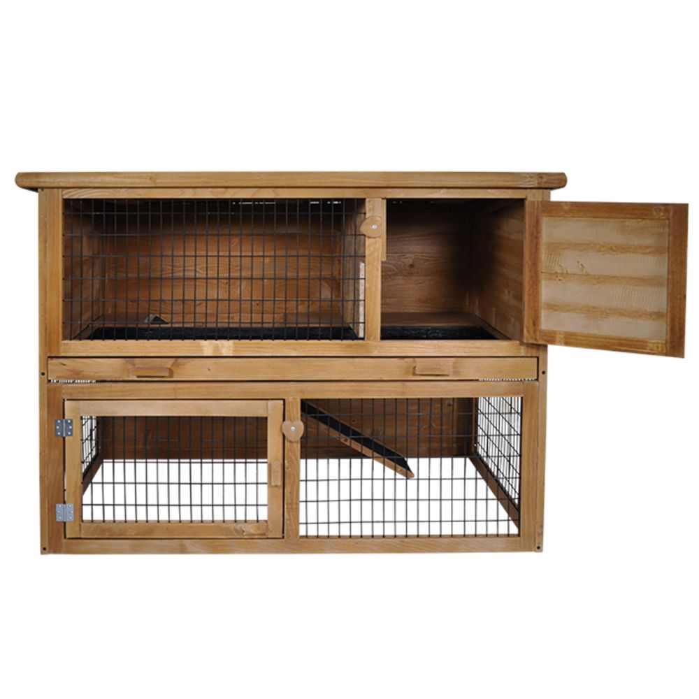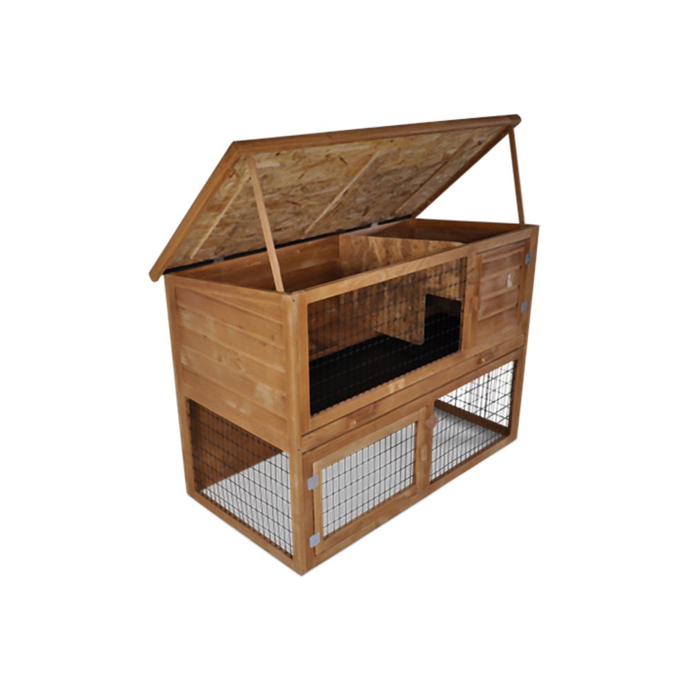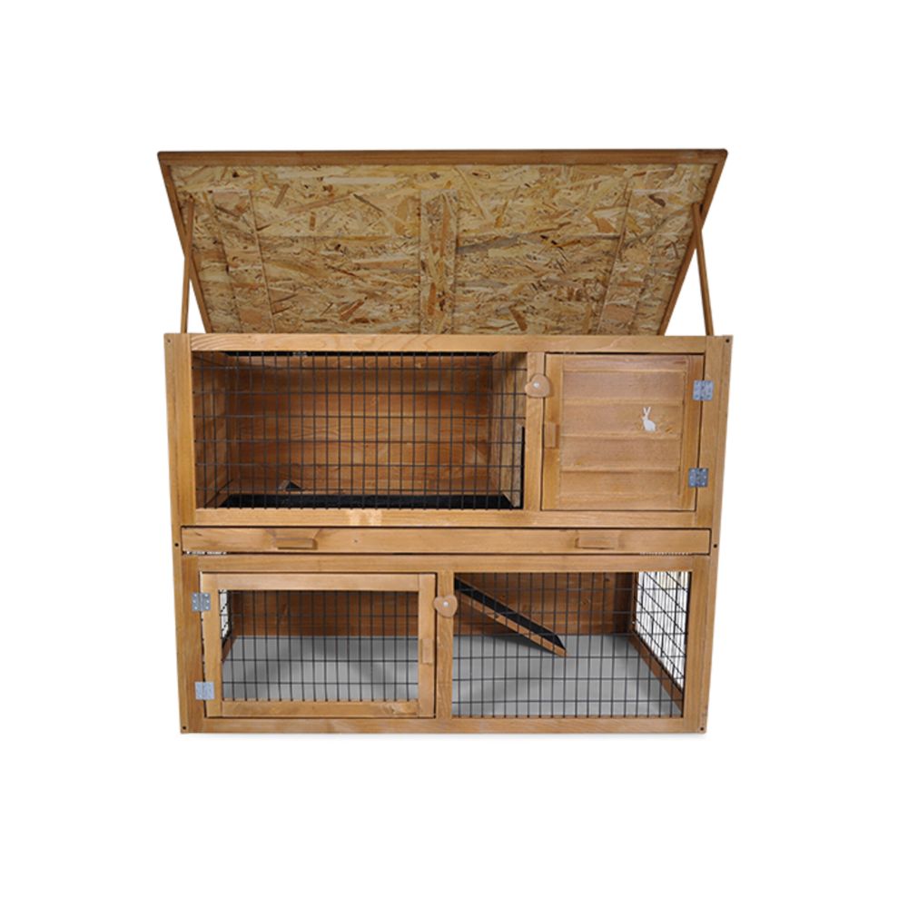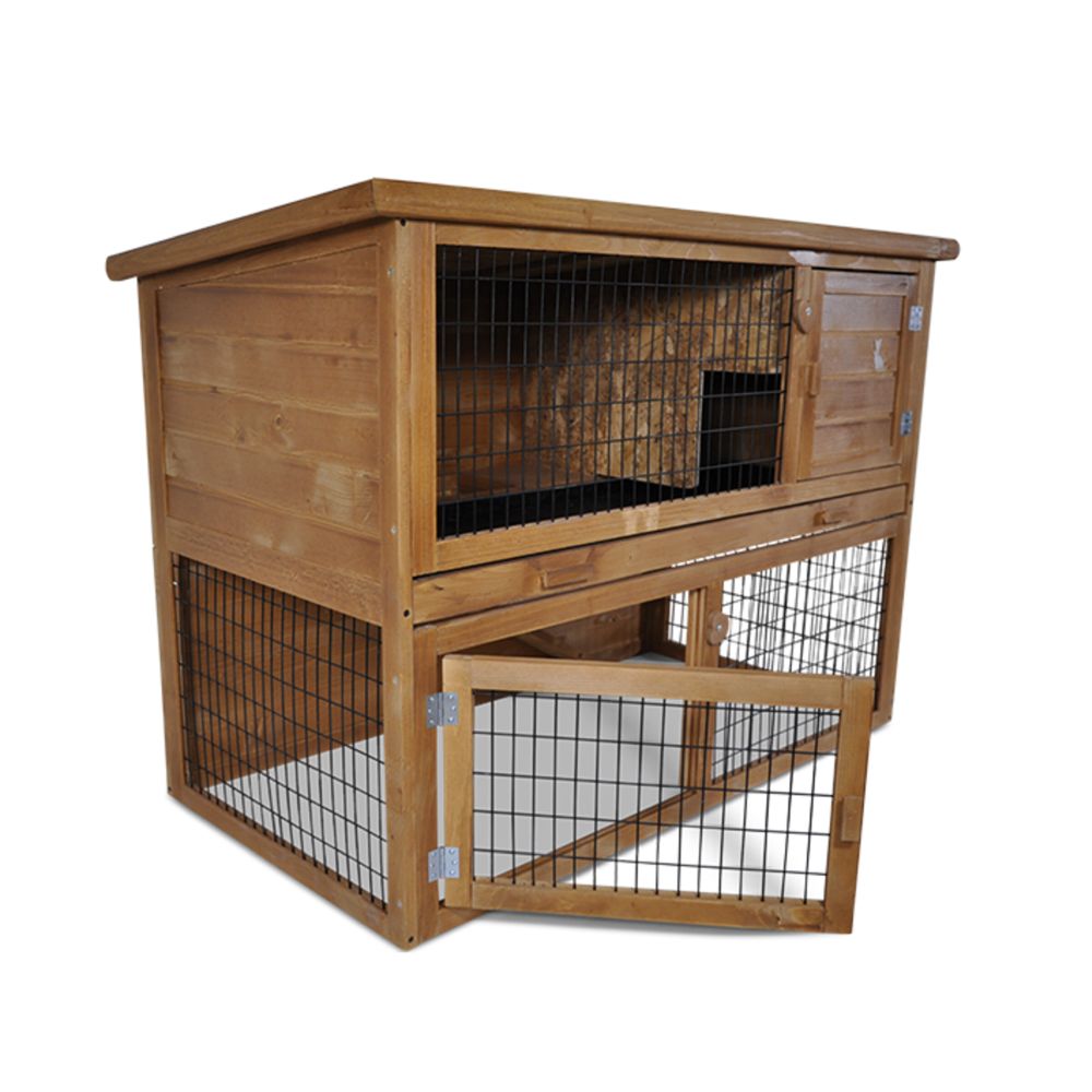 - Διαστάσεις: 121 cm μήκος × 65 cm πλάτος × 88 cm ύψος — κατάλληλο για 1–2 κουνέλια με άνεση.