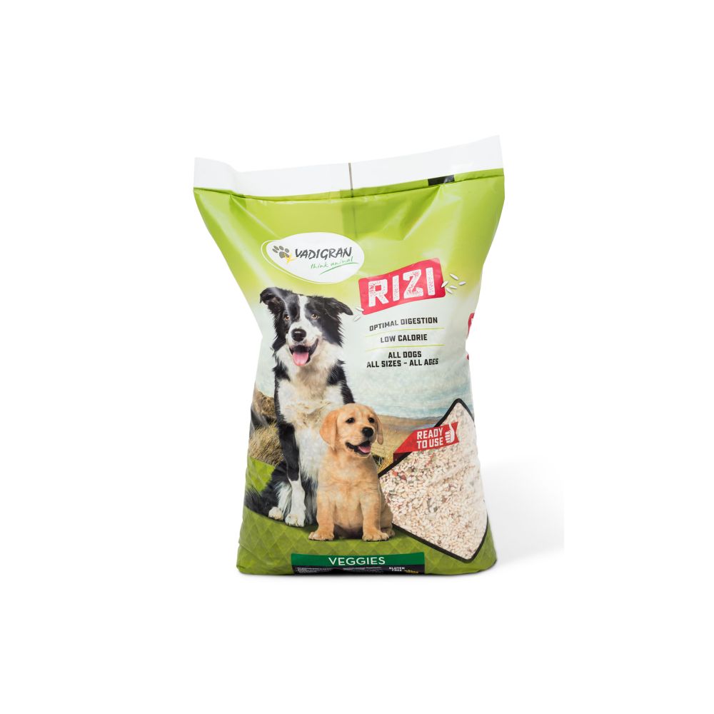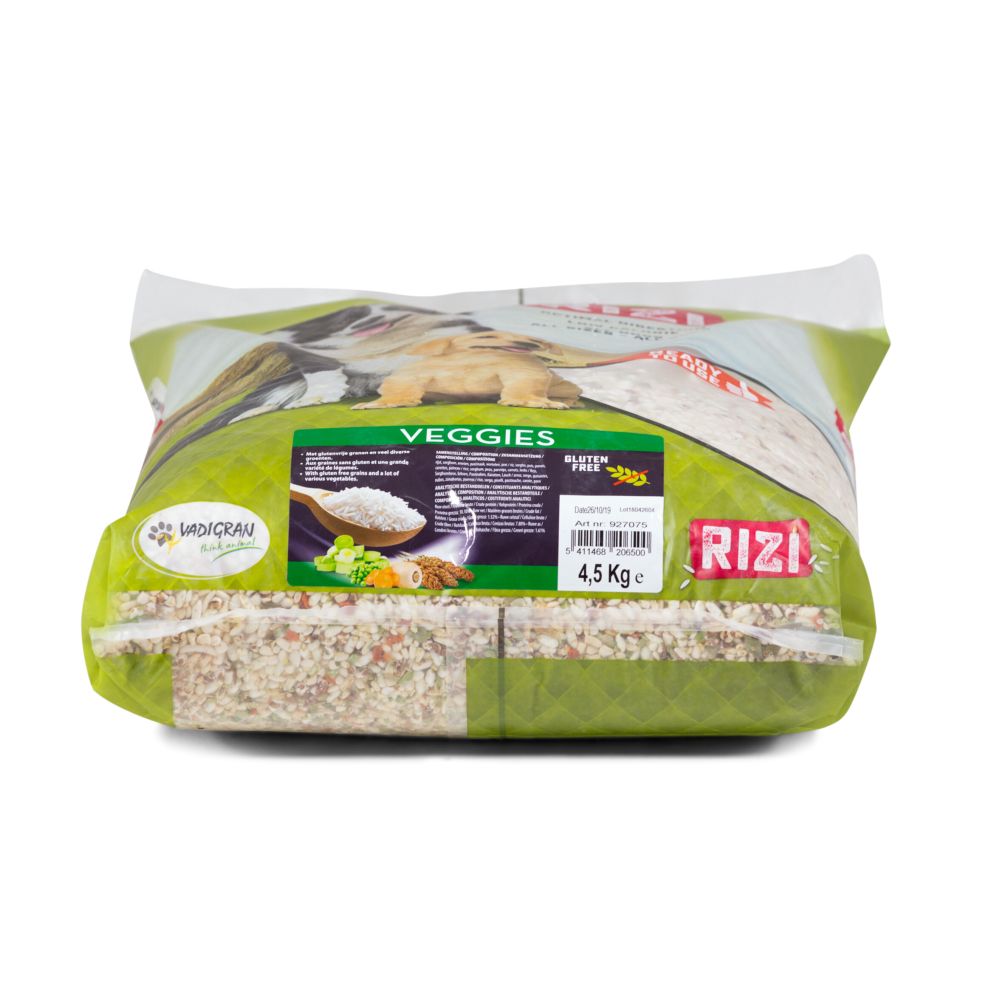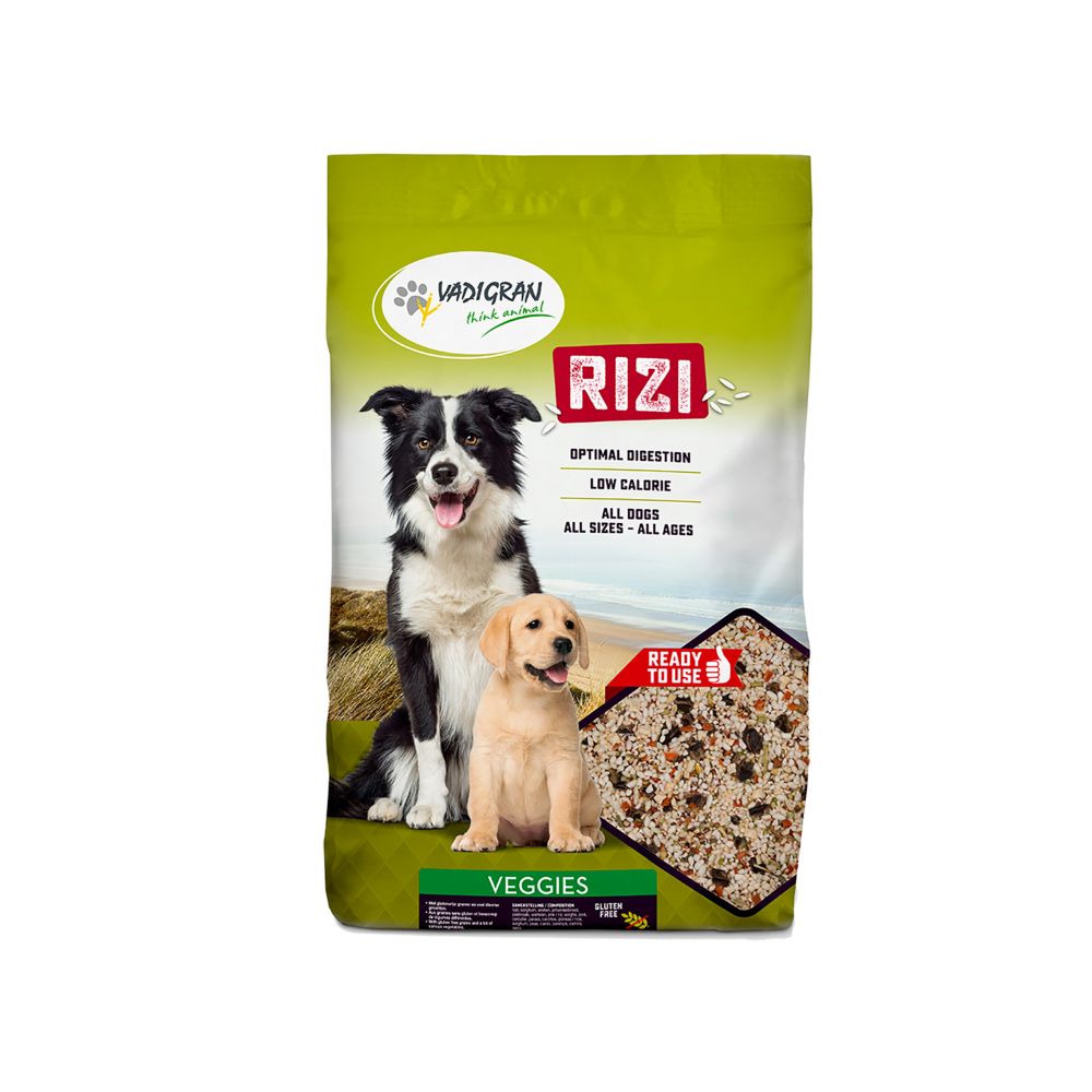 Το Vadigran Rizi Veggies Φυτικό Μείγμα για Σκύλους 1kg περιέχει υψηλή αναλογία λαχανικών όπως καρότο, πατζάρι, μπιζέλι και καρόβουνο, σε συνδυασμό με δημητριακά χωρίς γλουτένη (ρύζι και σόργο). Είναι μια φυσική επιλογή χωρίς πρόσθετα, χαμηλών θερμίδων, που συμβάλλει στην καλύτερη πέψη και τον κορεσμό του σκύλου.