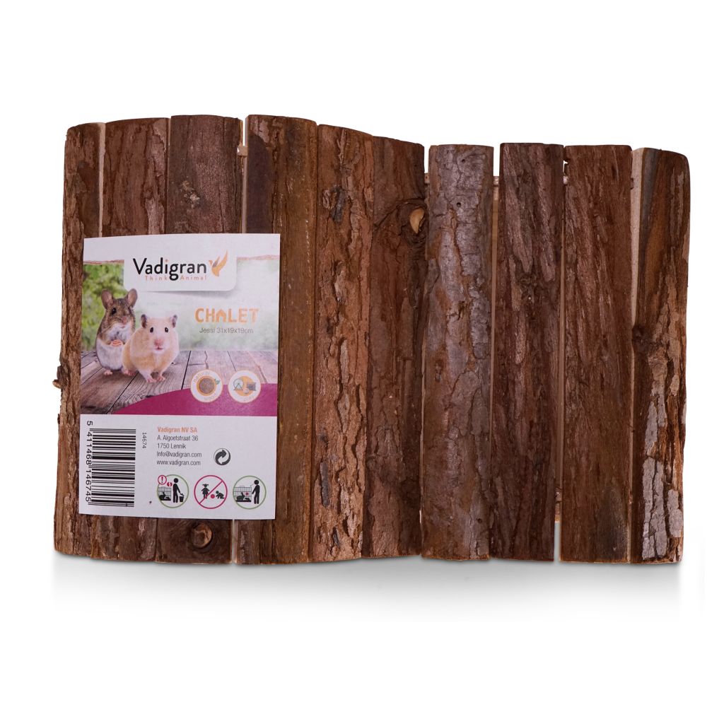 Το Vadigran Rodent House Wood Jessi 43×28×22 cm είναι ένα φυσικό ξύλινο καταφύγιο-σπίτι για τρωκτικά όπως χάμστερ, gerbil, degu, ινδικά χοιρίδια ή ποντίκια. Προσφέρει άνετο και ασφαλές χώρο για ύπνο, απόδραση από φως ή θόρυβο και γενική ηρεμία μέσα στο κλουβί, ενώ η στιβαρή ξύλινη κατασκευή εξασφαλίζει αντοχή και σταθερότητα.