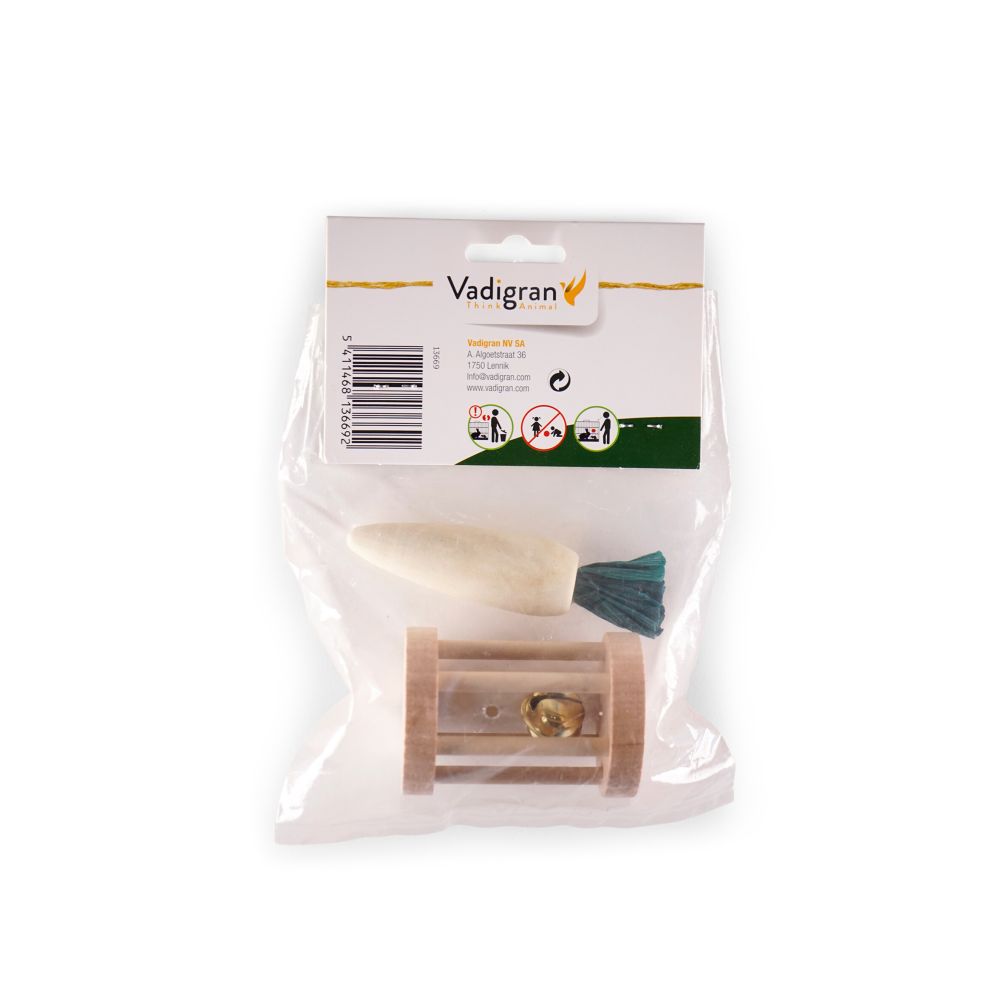 Το Vadigran Rodent Toy Wood Carrot είναι ένα σετ ξύλινων παιχνιδιών για χάμστερ, gerbil, ποντίκια και άλλα μικρά τρωκτικά. Τα δύο διαφορετικά σχήματα προσφέρουν ποικιλία στο παιχνίδι και ενθαρρύνουν το φυσικό μάσημα, βοηθώντας στη σωστή φθορά των δοντιών και στη νοητική δραστηριότητα του ζώου.