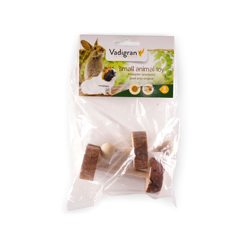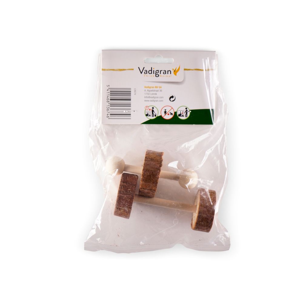 Το Vadigran Rodent Toy Wood Dumbbells 2×9 cm είναι ένα σετ ξύλινων παιχνιδιών κατάλληλο για χάμστερ, gerbil, ποντίκια, degu και άλλα μικρά τρωκτικά. Κατασκευασμένα από φυσικό ξύλο, είναι ασφαλή για μάσημα και βοηθούν στη φυσική φθορά των δοντιών, ενώ προσφέρουν απασχόληση και κίνηση μέσα στο κλουβί.