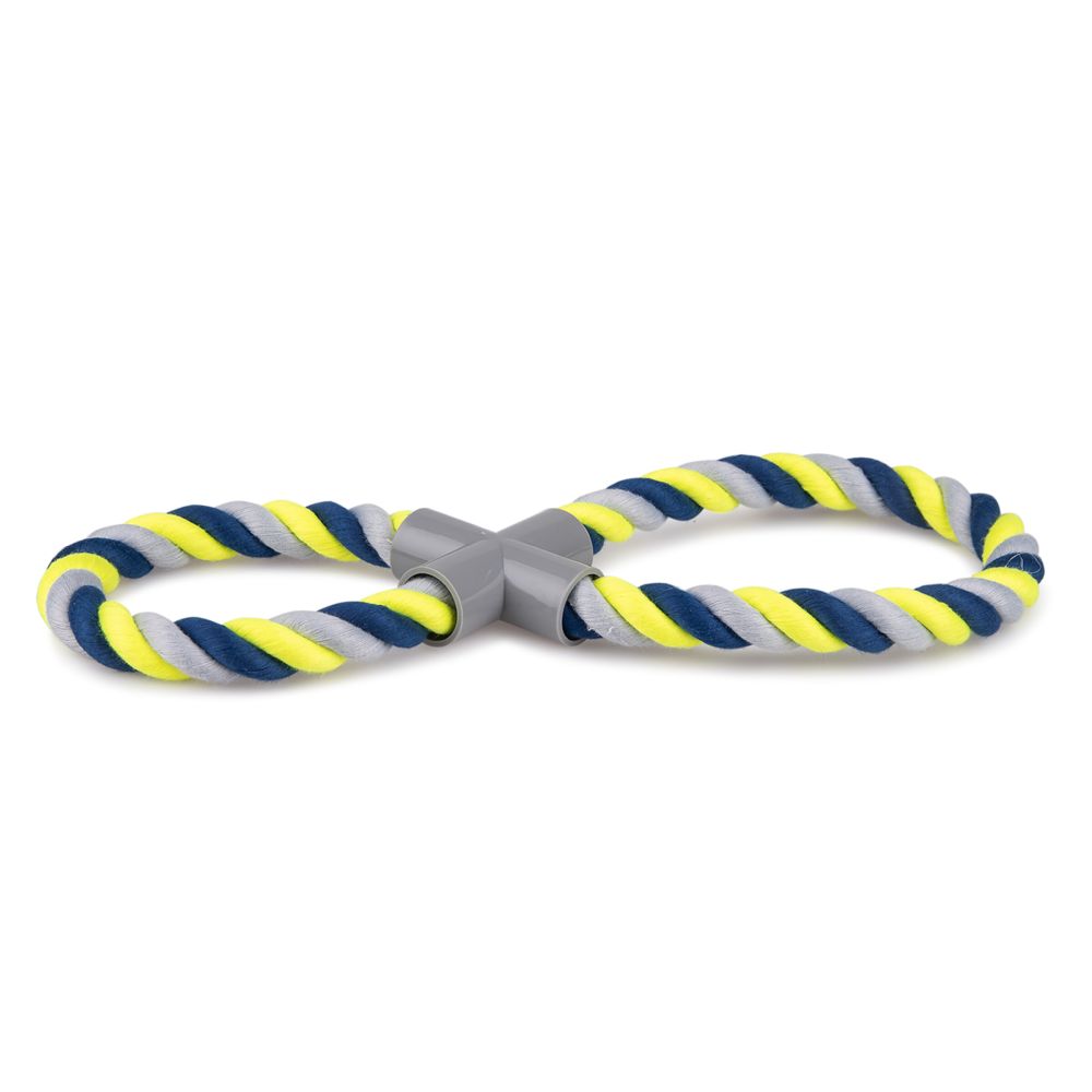 Βαμβακερό σχοινί 8-Σχήμα Μπλε/Κίτρινο 35cm 250gr — ιδανικό για παιχνίδι έλξης.