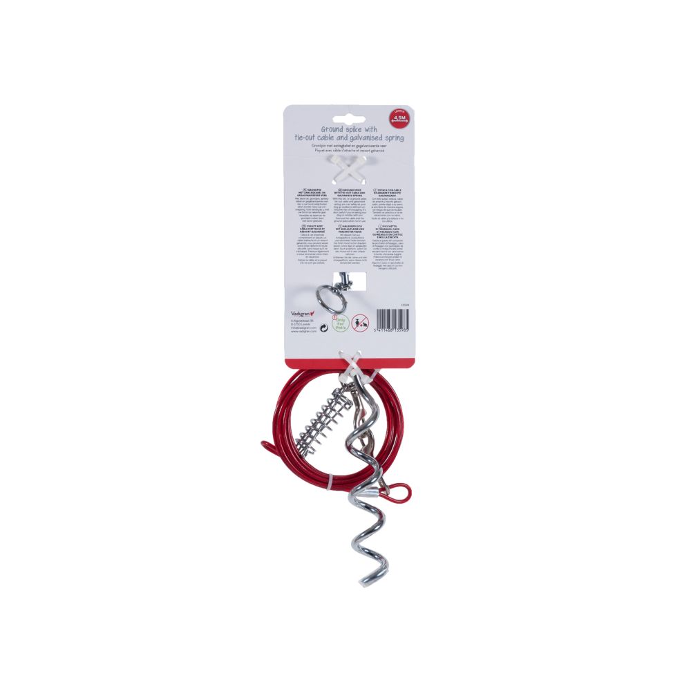 Το Vadigran Set Tie-Out Stake Καλώδιο Πρόσδεσης με Αμορτισέρ & Παλούκι 4.5m αποτελεί ολοκληρωμένη λύση για εξωτερική ασφάλεια του σκύλου σας. Το σετ περιλαμβάνει έναν σταθερό πάσαλο στο έδαφος και ένα καλώδιο μήκους 4.5m με ενσωματωμένο ελατήριο (αμορτισέρ) που απορροφά απότομα τραβήγματα, προστατεύοντας τον λαιμό και τα άκρα του κατοικιδίου σας. Ιδανικό για χρήση σε κήπο, αυλή ή εξοχή.