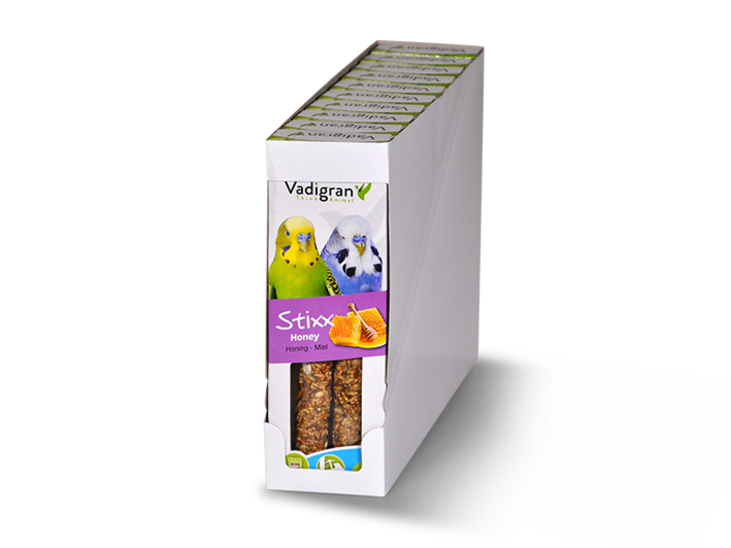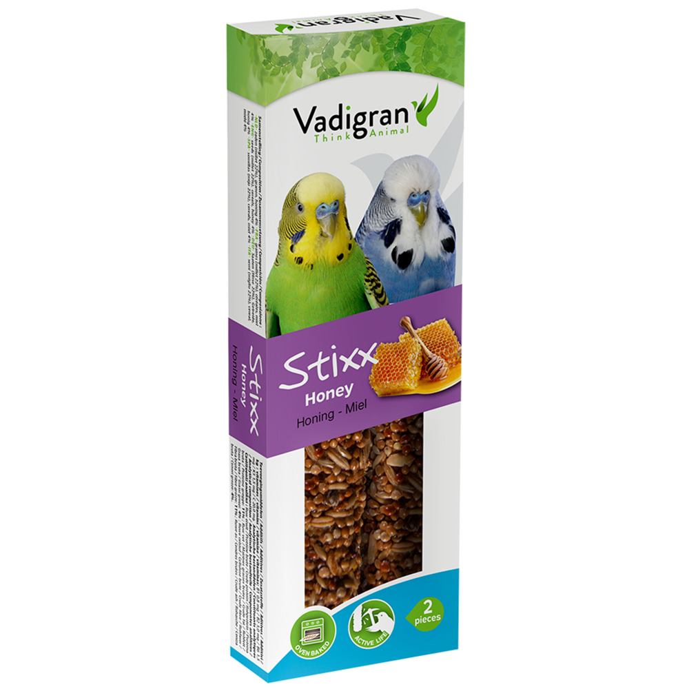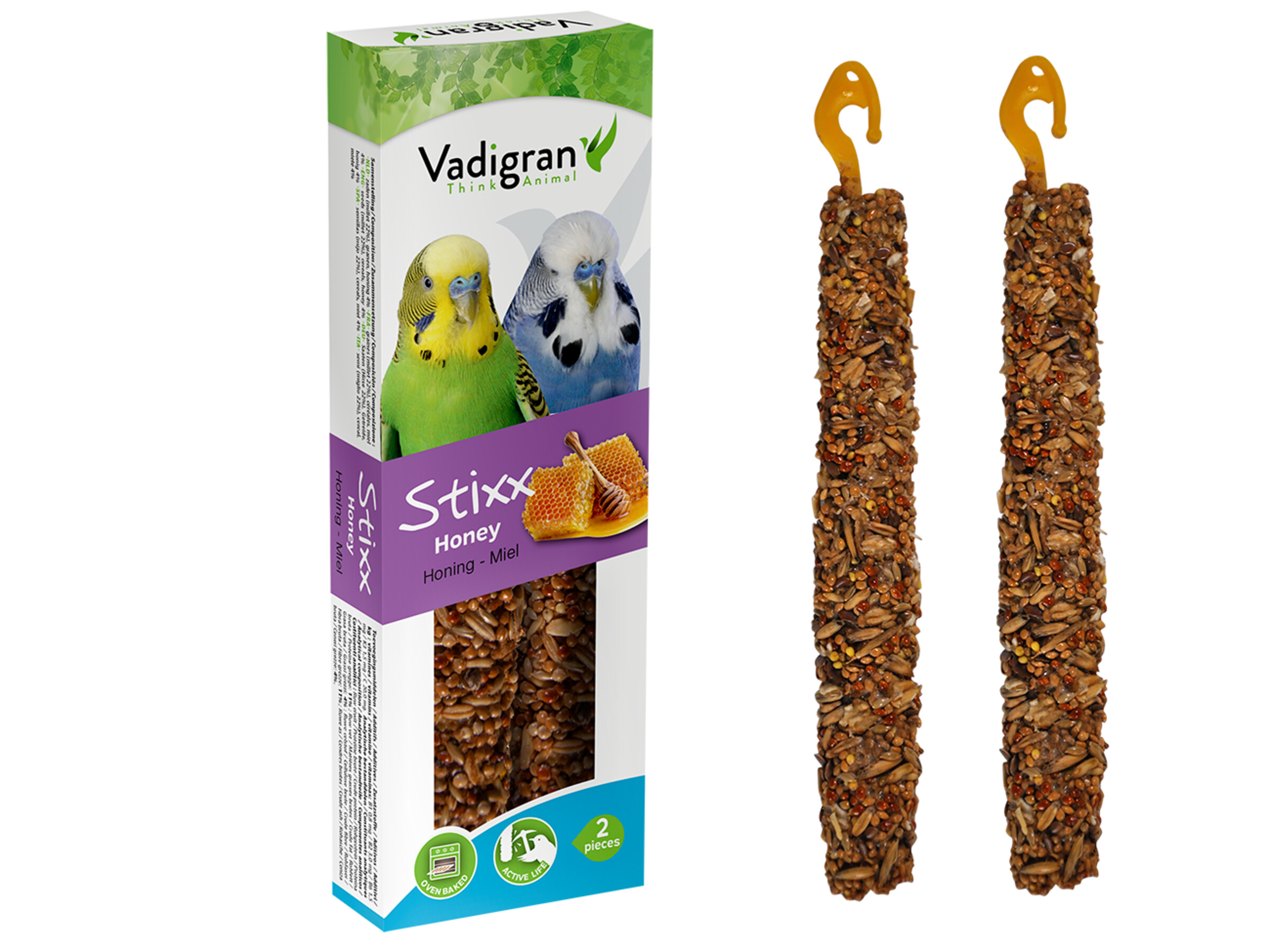 Τα Vadigran Stixx Budgie Honey αποτελούν ένα γευστικό snack που συνδυάζει φυσική γλύκα και θρεπτικά συστατικά ειδικά για τα παπαγαλάκια: