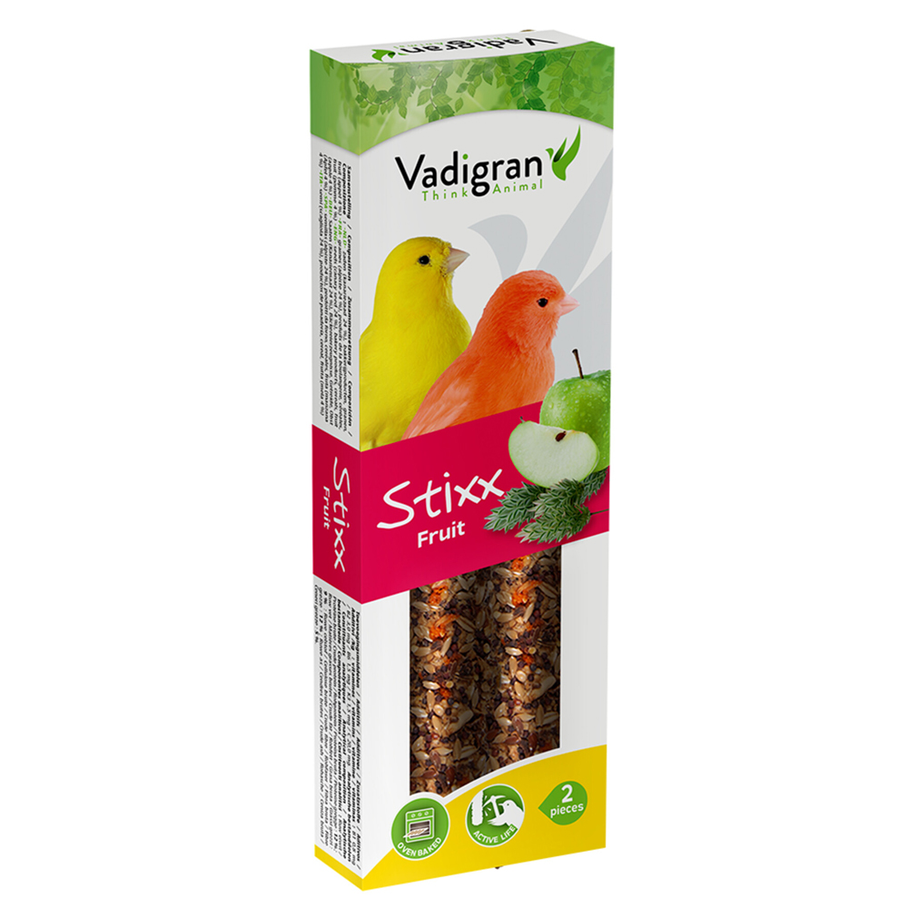 Τα Vadigran Stixx Canaries Fruit είναι ένα απολαυστικό snack για καναρίνια που συνδυάζει φρούτα, θρεπτικά συστατικά και ψυχαγωγία.