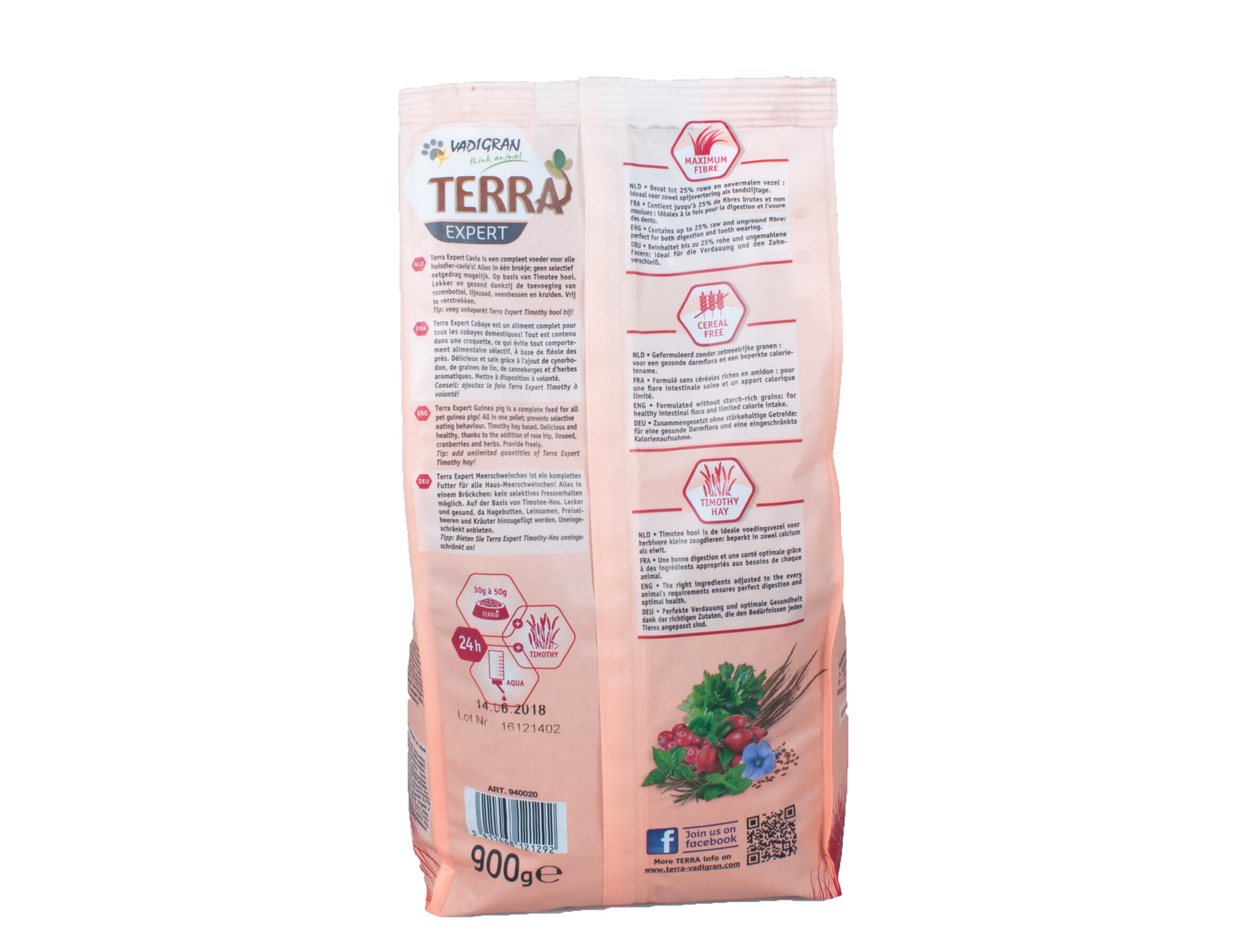 Η Vadigran Terra Expert Timothy Guinea Pig είναι μια πλήρης τροφή, ειδικά σχεδιασμένη για τις διατροφικές ανάγκες των ινδικών χοιριδίων: