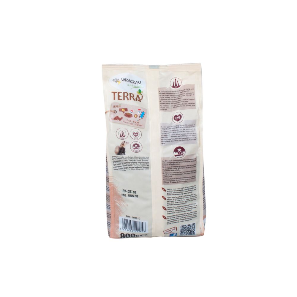 Το Vadigran Terra Ferret Πλήρης Τροφή 800 gr είναι σχεδιασμένο ειδικά για θηλαστικά όπως κουνάβια (ferrets), προσφέροντας υψηλής ποιότητας ζωικές πρωτεΐνες και λιπαρά για φυσική ενέργεια και ισορροπία. Οι σκληρές και τραγανές κροκέτες συμβάλλουν στην καλή οδοντική υγιεινή μειώνοντας την πλάκα και διατηρώντας τα δόντια καθαρά.