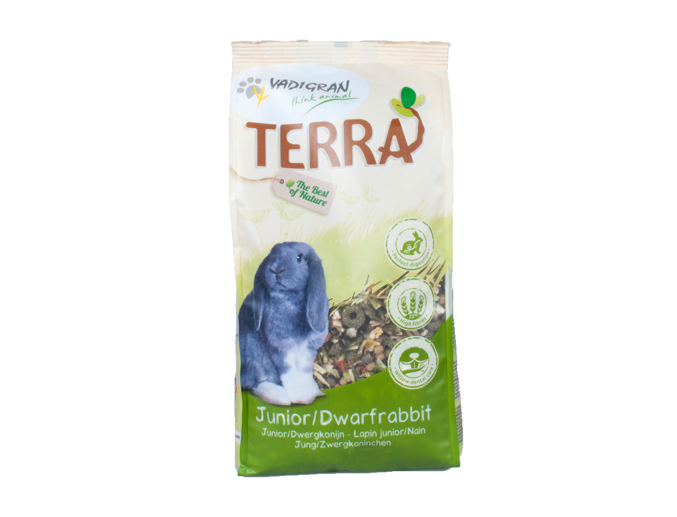 Η Vadigran Terra Junior & Dwarf Rabbit είναι σχεδιασμένη για να προσφέρει ισορροπημένη διατροφή σε νεαρά ή μικρόσωμα (νάνους) κουνέλια: