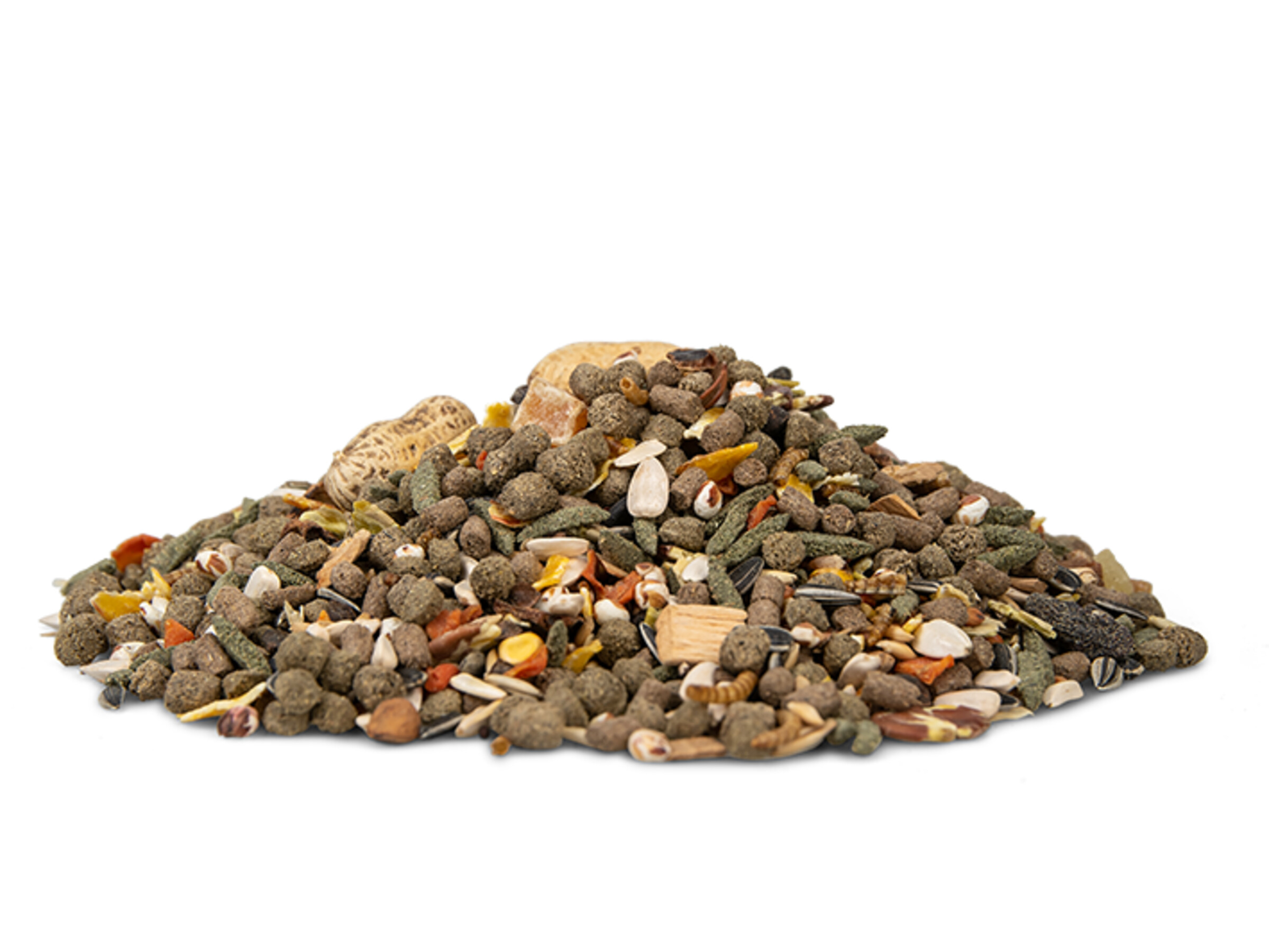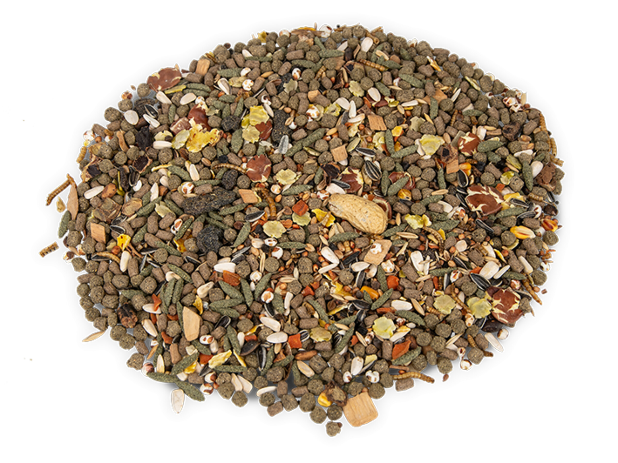 - Περιέχει φρούτα, σπόρους, δημητριακά, ξύλο ιτιάς και έντομα – για πλήρη και φυσική διατροφή