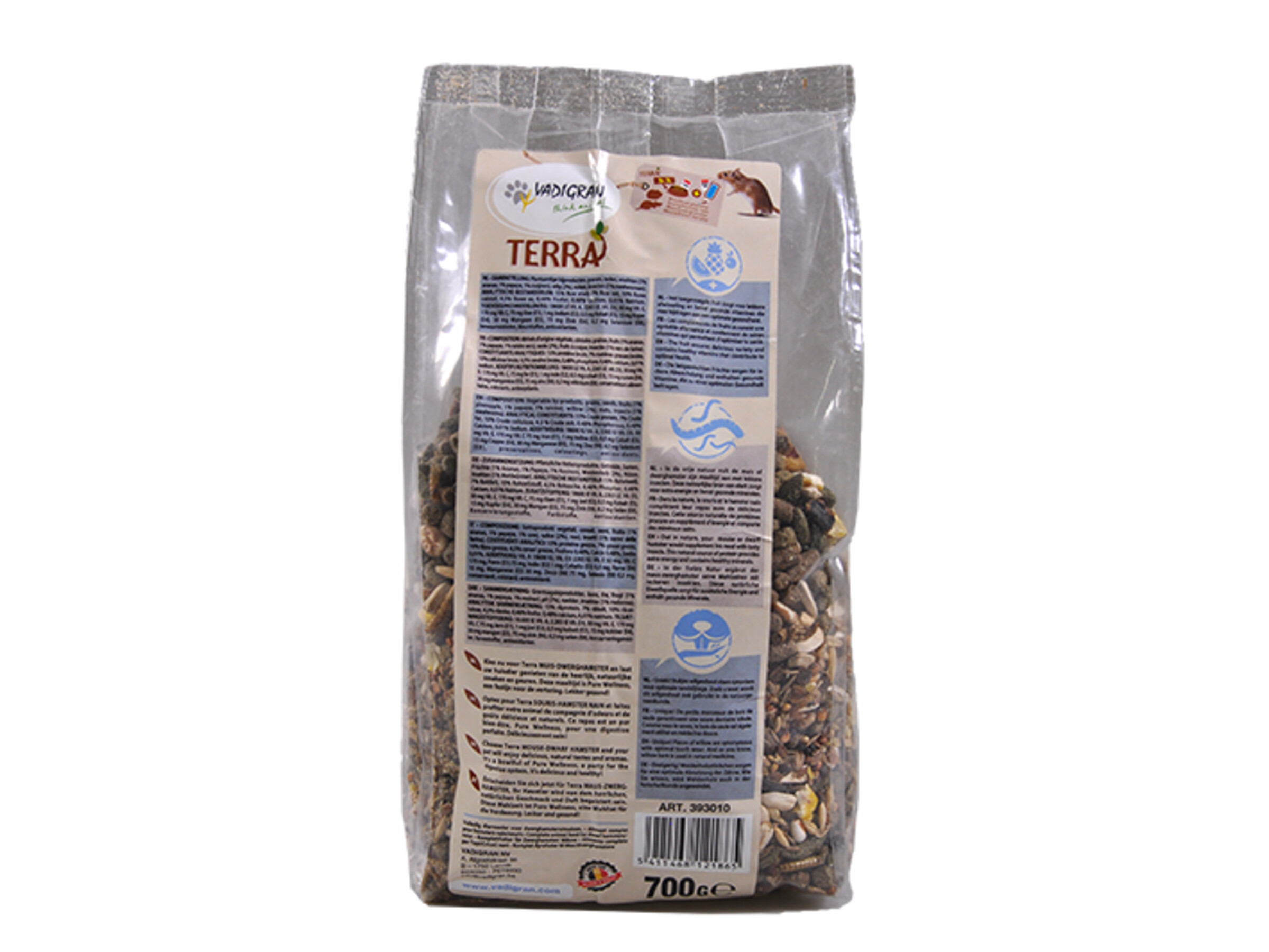 Η Vadigran Terra Mouse & Dwarf Hamster είναι μια πλήρης τροφή ειδικά σχεδιασμένη για ποντίκια και νάνους χάμστερ: