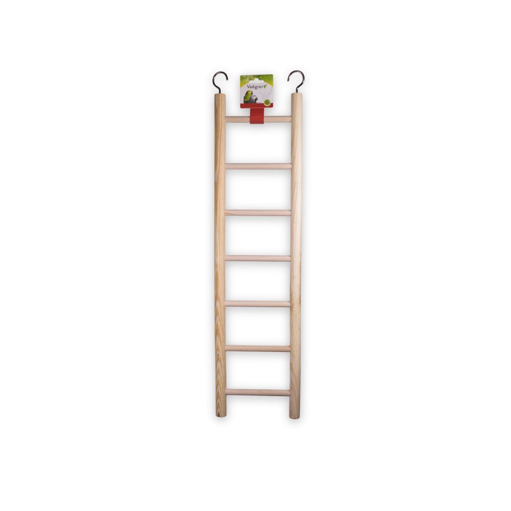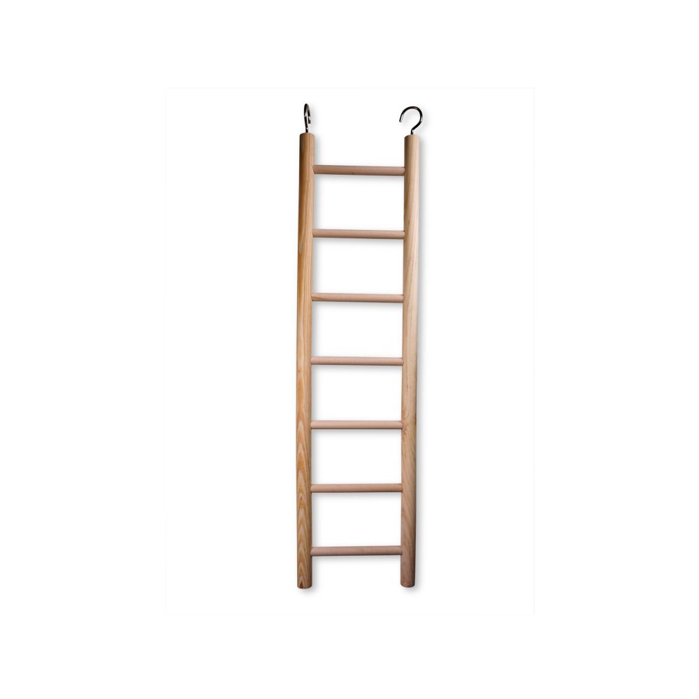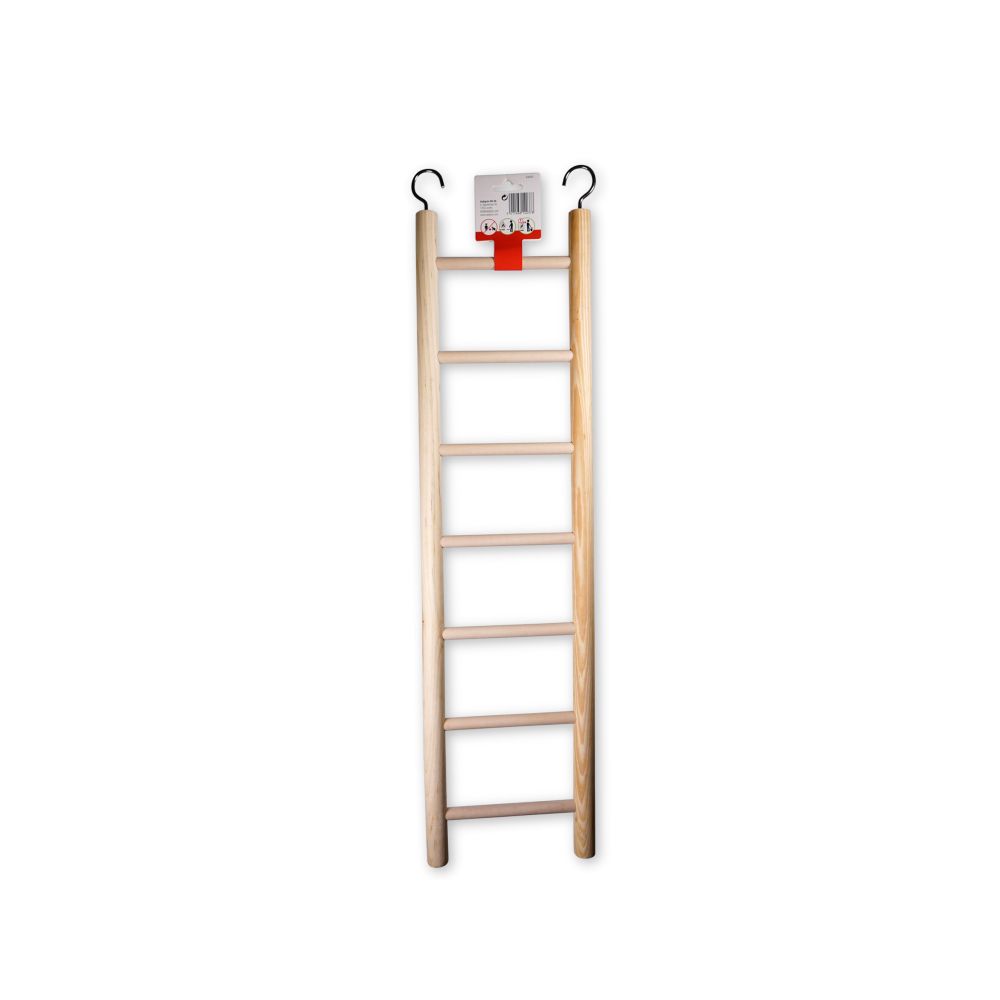 Ξύλινη σκάλα με 7 σκαλοπάτια και διαστάσεις 75×19 cm, σχεδιασμένη για να ενισχύει τη φυσική δραστηριότητα και την κινητική εξερεύνηση των πτηνών εντός του κλουβιού. Προσφέρει πολλαπλά επίπεδα για σκαρφάλωμα και παιχνίδι, υποστηρίζοντας την ευκινησία και την ισορροπία.