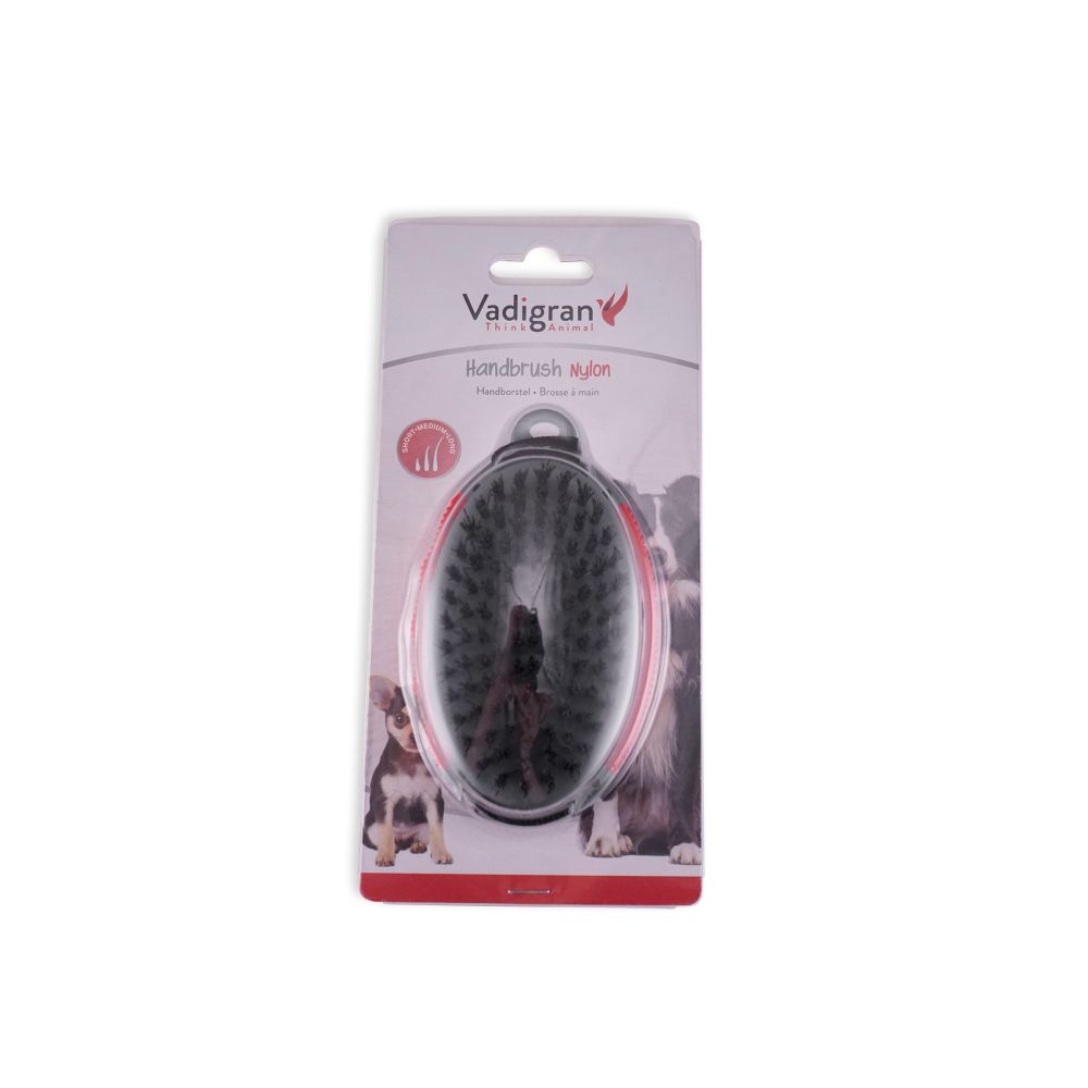 Η Vadigran Βούρτσα Χειρός με Νάιλον Τρίχες 12.5cm βοηθά στην απομάκρυνση σκόνης, χαλαρής τρίχας και στην ενίσχυση της λάμψης του τριχώματος. Διαθέτει εργονομική αντιολισθητική λαβή που εξασφαλίζει σταθερό και άνετο κράτημα κατά το βούρτσισμα.