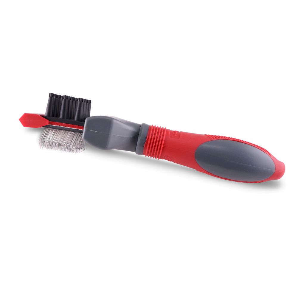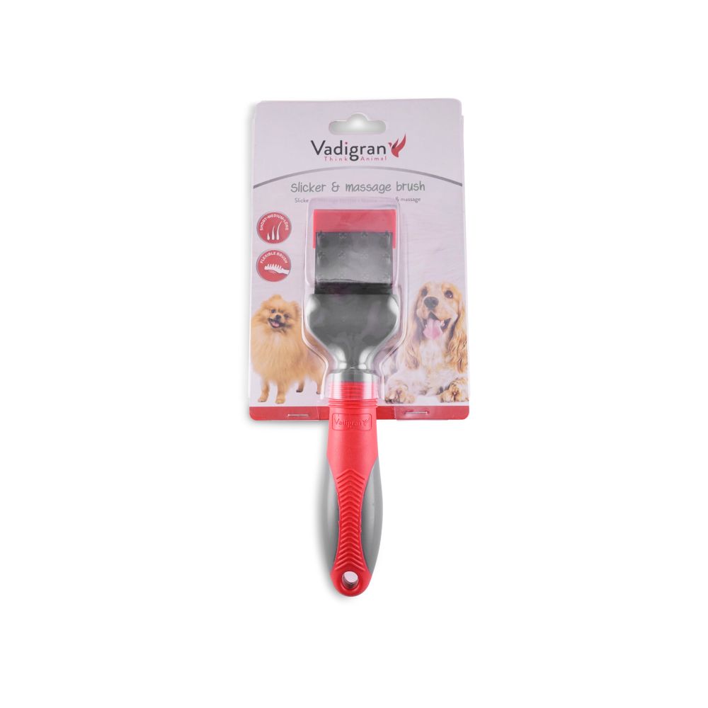 Η Vadigran Slicker & Massage Brush 2-in-1 είναι σχεδιασμένη για μικρούς και μεσαίου μεγέθους σκύλους. Η μία πλευρά διαθέτει μαλακές, γωνιακές ακίδες για να λειαίνει το τρίχωμα και να απομακρύνει χαλαρή τρίχα. Η άλλη πλευρά προσφέρει μασάζ που ενισχύει την κυκλοφορία του αίματος. Η αντιολισθητική χειρολαβή εξασφαλίζει άνετο και ασφαλές κράτημα.