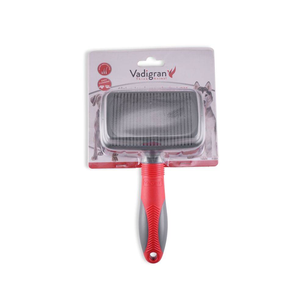 Η Vadigran Βούρτσα Slicker Easy Cleaning Large προσφέρει εξαιρετική φροντίδα τριχώματος για μεγαλόσωμους σκύλους. Οι εύκαμπτες ακίδες εισχωρούν βαθιά στο τρίχωμα, απομακρύνοντας περίσσεια τρίχα και κόμπους, ενώ το κουμπί εύκολου καθαρισμού επιτρέπει την άμεση απομάκρυνσή τους. Η αντιολισθητική χειρολαβή εξασφαλίζει άνετο και ασφαλές κράτημα.