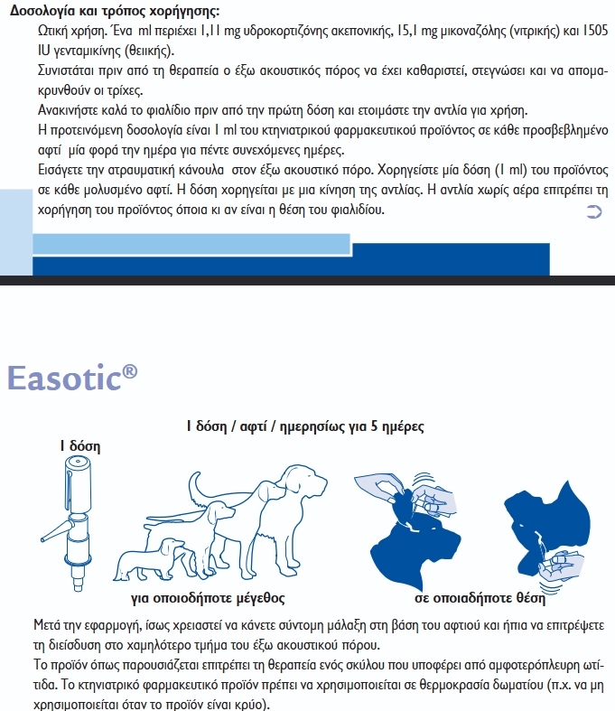- Θεραπεία οξείας εξωτερικής ωτίτιδας και οξείας παρόξυνσης υποτροπιάζουσας εξωτερικής ωτίτιδας σχετιζόμενης με βακτήρια ευαίσθητα στη γενταμικίνη και μύκητες ευαίσθητους στη μικοναζόλη και ιδιαίτερα Malassezia pachydermatis.