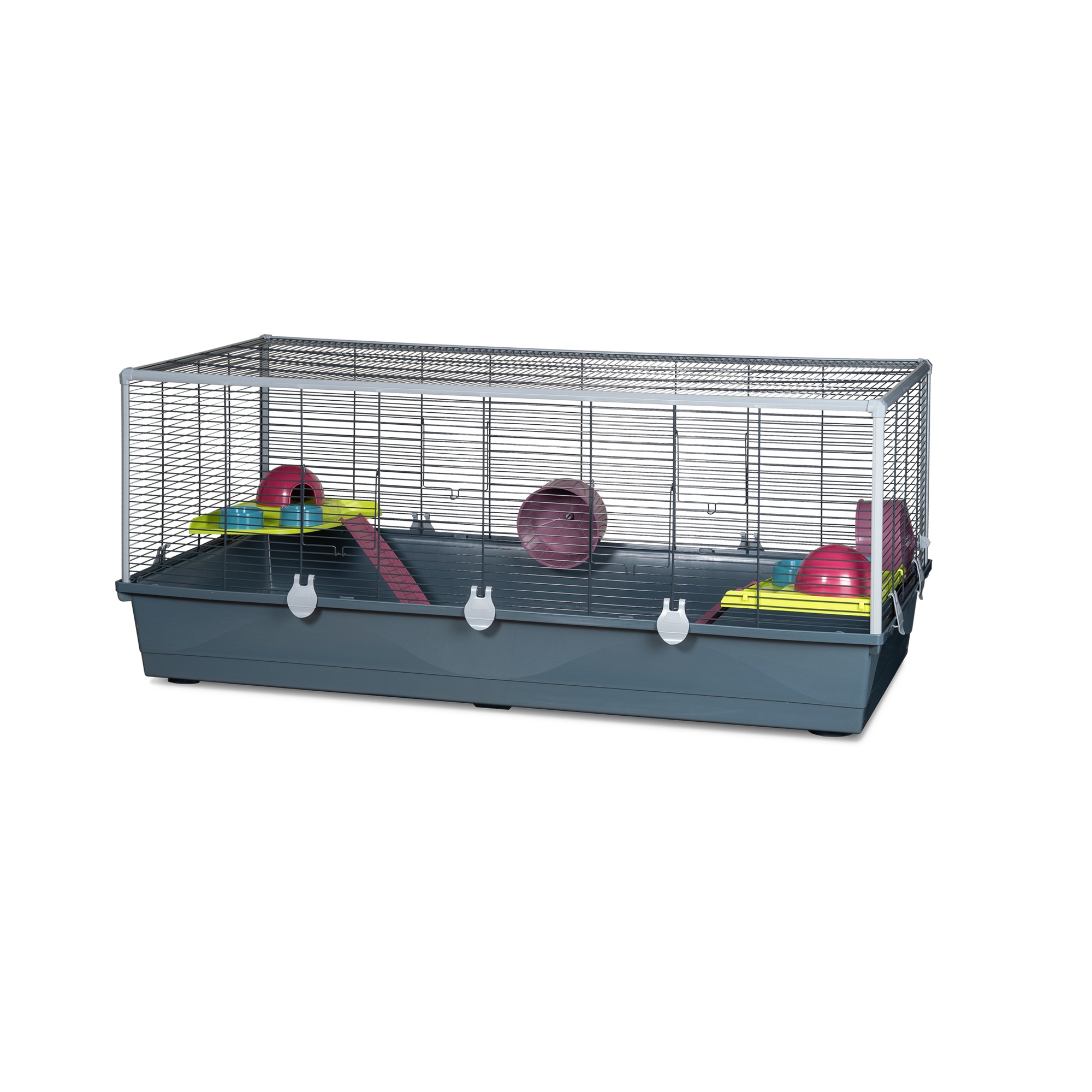 Σας παρουσιάζουμε το εξαιρετικά μεγάλο κλουβί μας για χάμστερ, σχεδιασμένο για μια ευρύχωρη και άνετη ζωή. Με μήκος 120 εκατοστά, αυτό το μοντέρνο και κομψό κλουβί διατίθεται πλήρως αποσυναρμολογημένο για εύκολη μεταφορά και συναρμολόγηση. Ιδανικό για να διασφαλίσετε ότι το κατοικίδιό σας έχει άφθονο χώρο για εξερεύνηση, προσθέτοντας παράλληλα μια πινελιά στυλ στο σπίτι σας. Περιλαμβάνει όλα τα αξεσουάρ που φαίνονται στην εικόνα. Κατασκευασμένο στην Ευρώπη (Ισπανία). Κατασκευασμένο από σύρμα χωρίς μόλυβδο με εποξειδική επίστρωση. Μη τοξικές πρώτες ύλες για το κατοικίδιό σας.