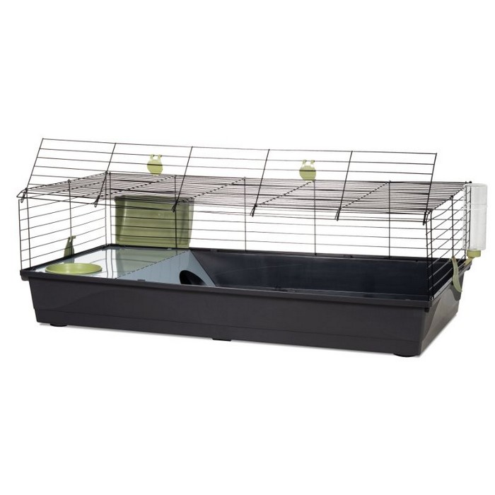 ΟΙΚΟΛΟΓΙΚΟ προϊόν. Αυτό το βασικό και ελκυστικό κλουβί για κουνέλια είναι πτυσσόμενο, εξοικονομώντας σας χρήματα τόσο στη μεταφορά όσο και στην αποθήκευση. Διαθέτει πλήρως ανοιγόμενη μπροστινή πόρτα για εύκολη πρόσβαση στο κλουβί. Διαθέτει μεταλλική φωλιά για καλύτερο καταφύγιο στο κουνέλι. Περιλαμβάνονται ένα μπουκάλι νερού 500ml, ένα πιάτο φαγητού και μια σχάρα για άχυρο. Κατασκευασμένο στην Ευρώπη (Ισπανία), χρησιμοποιώντας σύρμα επικαλυμμένο με εποξειδική βαφή χωρίς μόλυβδο και χρησιμοποιώντας μόνο ανακυκλωμένο πλαστικό πολυπροπυλενίου, μη τοξικές πρώτες ύλες για το κατοικίδιό σας.