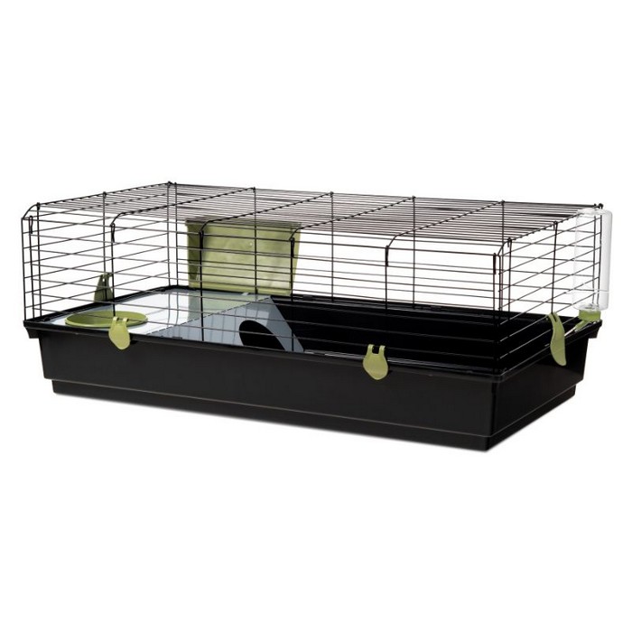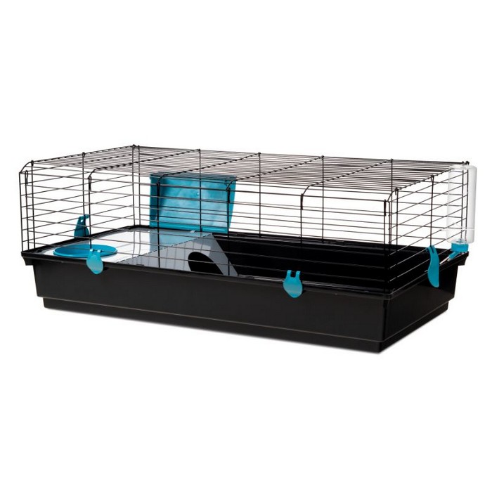 ΟΙΚΟΛΟΓΙΚΟ προϊόν. Αυτό το βασικό και ελκυστικό κλουβί για κουνέλια είναι πτυσσόμενο, εξοικονομώντας σας χρήματα τόσο στη μεταφορά όσο και στην αποθήκευση. Διαθέτει πλήρως ανοιγόμενη μπροστινή πόρτα για εύκολη πρόσβαση στο κλουβί. Διαθέτει μεταλλική φωλιά για καλύτερο καταφύγιο στο κουνέλι. Περιλαμβάνονται ένα μπουκάλι νερού 500ml, ένα πιάτο φαγητού και μια σχάρα για άχυρο. Κατασκευασμένο στην Ευρώπη (Ισπανία), χρησιμοποιώντας σύρμα επικαλυμμένο με εποξειδική βαφή χωρίς μόλυβδο και χρησιμοποιώντας μόνο ανακυκλωμένο πλαστικό πολυπροπυλενίου, μη τοξικές πρώτες ύλες για το κατοικίδιό σας.