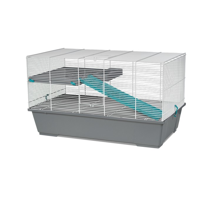 ΟΙΚΟΛΟΓΙΚΟ προϊόν. Μεσαίου μεγέθους ψηλό κλουβί ιδανικό για αρουραίους και degus, με δύο πόρτες και περιλαμβάνει δάπεδο και σκάλα για να δίνει περισσότερο χώρο στο κατοικίδιο. Κατασκευασμένο στην Ευρώπη (Ισπανία), με εποξειδική βαφή χωρίς μόλυβδο και ανακυκλωμένο, μη τοξικό πλαστικό πολυπροπυλενίου.