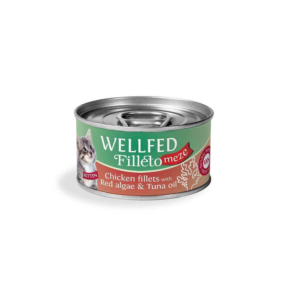 Συμπληρωματική υγρή τροφή με φιλετάκια κοτόπουλου και κόκκινο φύκι, για την ανήλικη γατούλα σας. Το κοτόπουλο είναι ένα άπαχο κρέας που προσφέρει στη μικρή μας φίλη την απαραίτητη πρωτεΐνη που χρειάζεται ο οργανισμός της. Επιπλέον, ενισχύει το μυϊκό της σύστημα και είναι μία πλούσια πηγή Ωμέγα 6 λιπαρών οξέων, που διασφαλίζουν υγιές δέρμα και λαμπερό τρίχωμα. Τέλος, η παρουσία των αμινοξέων και της γλυκοζαμίνης χτίζουν υγιείς αρθρώσεις. Το κόκκινο φύκι είναι πολύτιμη πηγή φυσικών αντιοξειδωτικών, ενισχύοντας το ανοσοποιητικό. Είναι πλούσιο σε ασβέστιο, μαγνήσιο και ψευδάργυρο. Η γευστική αυτή τροφή είναι πλούσια σε πρωτεΐνες, χαμηλή σε λιπαρά και υδατάνθρακες, ενώ δεν περιέχει συντηρητικά, τεχνητά χρώματα & αρώματα.