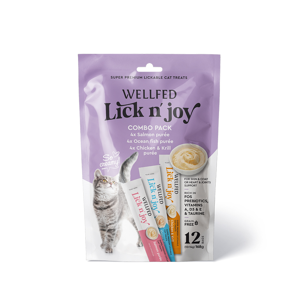 Τα Wellfed Lick N’ Joy MIX Tastes προσφέρουν μια σειρά από γεύσεις, παρέχοντας ποικιλία για την απόλαυση της γάτας σας.
