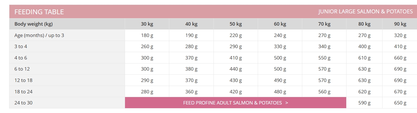 Κάθε σκύλος είναι διαφορετικός και η ποσότητα παρεχόμενης τροφής είναι πιθανό να αλλάζει με βάση την ηλικία και τον τρόπο ζωής του. Χρησιμοποιήστε την συνιστώμενη δόση σαν οδηγό, παρακολουθείστε το βάρος του και προσαρμόστε ανάλογα τις ποσότητες για τον μικρό μας φίλο. Ταΐστε τον δύο φορές την ημέρα, έχοντας πάντα δίπλα του φρέσκο, καθαρό νερό!