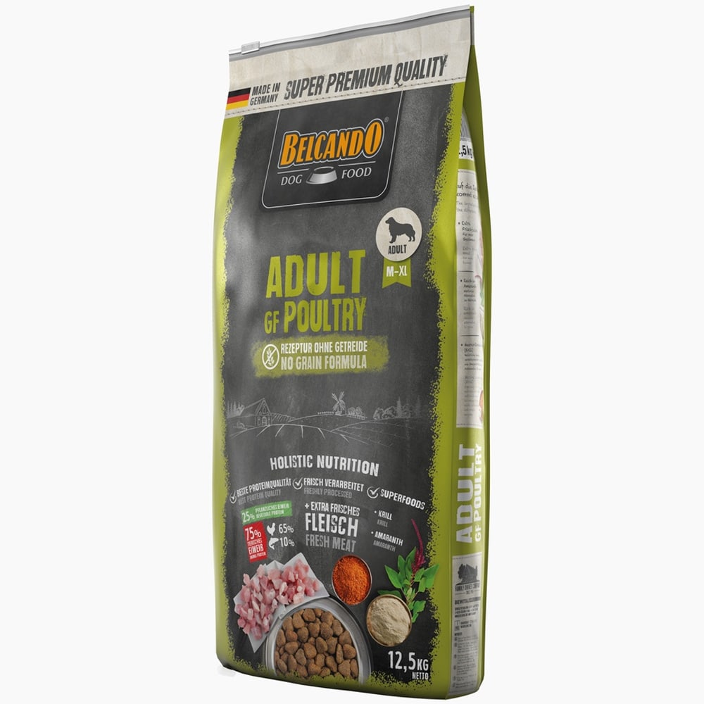 Πλήρης τροφή χωρίς σιτηρά με πουλερικά και χαρούπι για το ενήλικο σκυλάκι σας μεσαίας ή μεγαλόσωμης φυλής. Η τροφή αυτή είναι ιδανική για σκυλάκους με αλλεργία στα σιτηρά και δυσανεξίες. Τα σιτηρά έχουν αντικατασταθεί από τον πολύ υψηλής διατροφικής αξίας Αμάραντο (Super food). Ο Αμάραντος είναι μία από τις αρχαιότερες γεωργικές καλλιέργειες του ανθρώπου. Σε συνδυασμό με τους ωφέλιμους καρπούς Chia, οι οποίοι ήταν επίσης ένα από τα πρώτα βασικά τρόφιμα και super foods, προσδίδουν μια ιδιαίτερα ισορροπημένη και διατροφικά πλούσια σύνθεση.