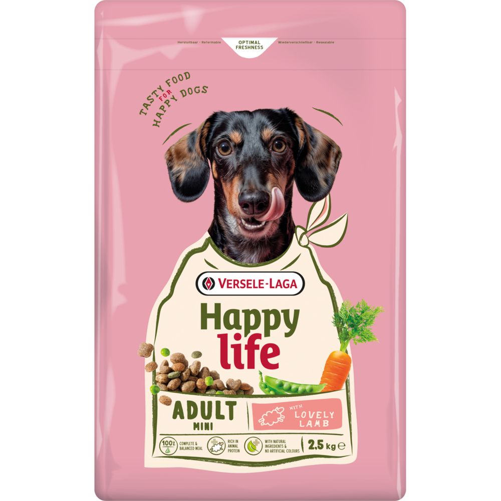 Η πλήρης και ποικίλη αυτή τροφή με αρνί, είναι ιδανική για ζωηρούς ενήλικους μικρόσωμους σκύλους. Η Happy Life μετατρέπει κάθε γεύμα σε γιορτή. Με φυσικά συστατικά και ακαταμάχητες γεύσεις, μπορείτε να προσφέρετε στον σκύλο σας μια γαστρονομική εμπειρία που υποστηρίζει την υγεία του και απογειώνει τις αισθήσεις του. Η σύνθεση της είναι 100% πλήρης και ισορροπημένη, με την τέλεια αρμονία μεταξύ πρωτεϊνών, λιπαρών, υδατανθράκων, βιταμινών και μετάλλων, στοιχεία απαραίτητα για την ευεξία του. Είναι πλούσια σε ζωική πρωτεΐνη, που καλύπτει καλύτερα τις φυσικές διατροφικές ανάγκες του σκύλου σας, δεν περιέχει τεχνητά χρώματα, ενώ σημαντική είναι και η περιεκτικότητά της σε φυσικά συστατικά, όπως η σπιρουλίνα.