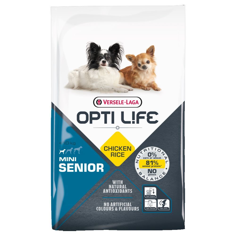 Πλήρης τροφή με κοτόπουλο και ρύζι για το ώριμο ή ηλικιωμένο σκυλάκι σας, μικρόσωμων φυλών, άνω των 7 ετών. Η τροφή αυτή είναι ειδικά σχεδιασμένη για να καλύψει όλες τις ανάγκες των μικρών μας φίλων. Το 82% της πρωτεΐνης που υπάρχει είναι ζωικής προέλευσης (κοτόπουλο). Οι ζωικές πρωτεΐνες είναι εύγεστες και εύπεπτες επιτρέποντας την γρήγορη πρόσληψη της κροκέτας. Μια σύνθεση χωρίς γλουτένη, που βασίζεται στο ρύζι ως μοναδική πηγή δημητριακών, η οποία εγγυάται μια εύκολη πέψη ακόμα και στις πιο ευαίσθητες φυλές. Χωρίς αραβόσιτο ή σιτάρι για την πρόληψη τυχόν τροφικών δυσανεξιών. Εγγυημένες ποσότητες φυσικών αντιοξειδωτικών (βιταμίνη C, βιταμίνη E, σπόροι σταφυλιών) βοηθούν στην καταπολέμηση της γήρανσηςτων των κυττάρων. Επιπλέον περιέχει FOS & MOS για την τόνωση της καλής εντερικής χλωρίδας και επομένως την ρύθμιση της πέψης των μικρών μας φίλων.