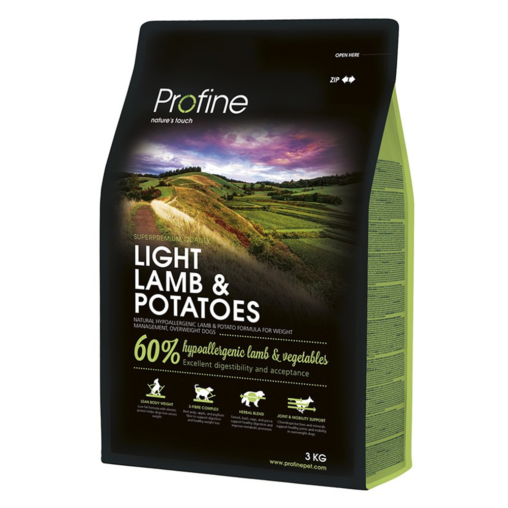 Πλήρης τροφή με αρνί και πατάτα με υποαλλεργική σύνθεση για ενήλικους κι ανήλικους υπέρβαρους σκυλάκους ή σκυλάκους με τάσεις αύξησης βάρους, ανεξαρτήτως φυλής. Η τροφή αυτή έχει σύνθεση χαμηλής περιεκτικότητας σε λιπαρά με διατροφικές πρωτεΐνες που βοηθούν την απώλεια βάρους για τους μικρούς μας φίλους με τάσεις παχυσαρκίας. Περιέχει σύμπλεγμα 3 ινών από πούλπα τεύτλων, μήλο και ψύλλιο για υποστήριξη του πεπτικού συστήματος και υγιή απώλεια βάρους, υποστήριξη αρθρώσεων και κινητικότητας. Τα χονδροπροστατευτικά και τα ανόργανα συστατικά προάγουν την ανάπτυξη υγιών αρθρώσεων και την κινητικότητα σε υπέρβαρους σκυλάκους. Το μάραθο, ο βασιλικός, το φασκόμηλο και η γιούκα προάγουν το υγιές πεπτικό σύστημα και βελτιώνουν τον μεταβολισμό.