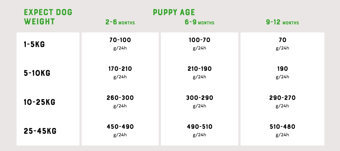 • Η όρεξη κάθε σκύλου διαφέρει ανάλογα με το μέγεθος, την ηλικία, την κατάσταση και το επίπεδο δραστηριότητας. Παρακαλούμε προσαρμόστε την ποσότητα που δίνεται για να διατηρείτε τον σκύλο σας σε μια λεπτή και δραστήρια κατάσταση. Να διασφαλίζετε πάντα ότι υπάρχει διαθέσιμο καθαρό πόσιμο νερό.
